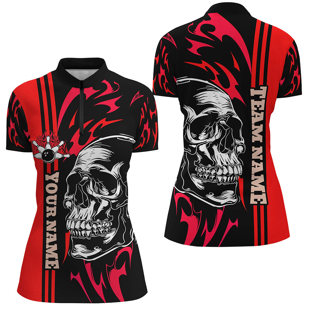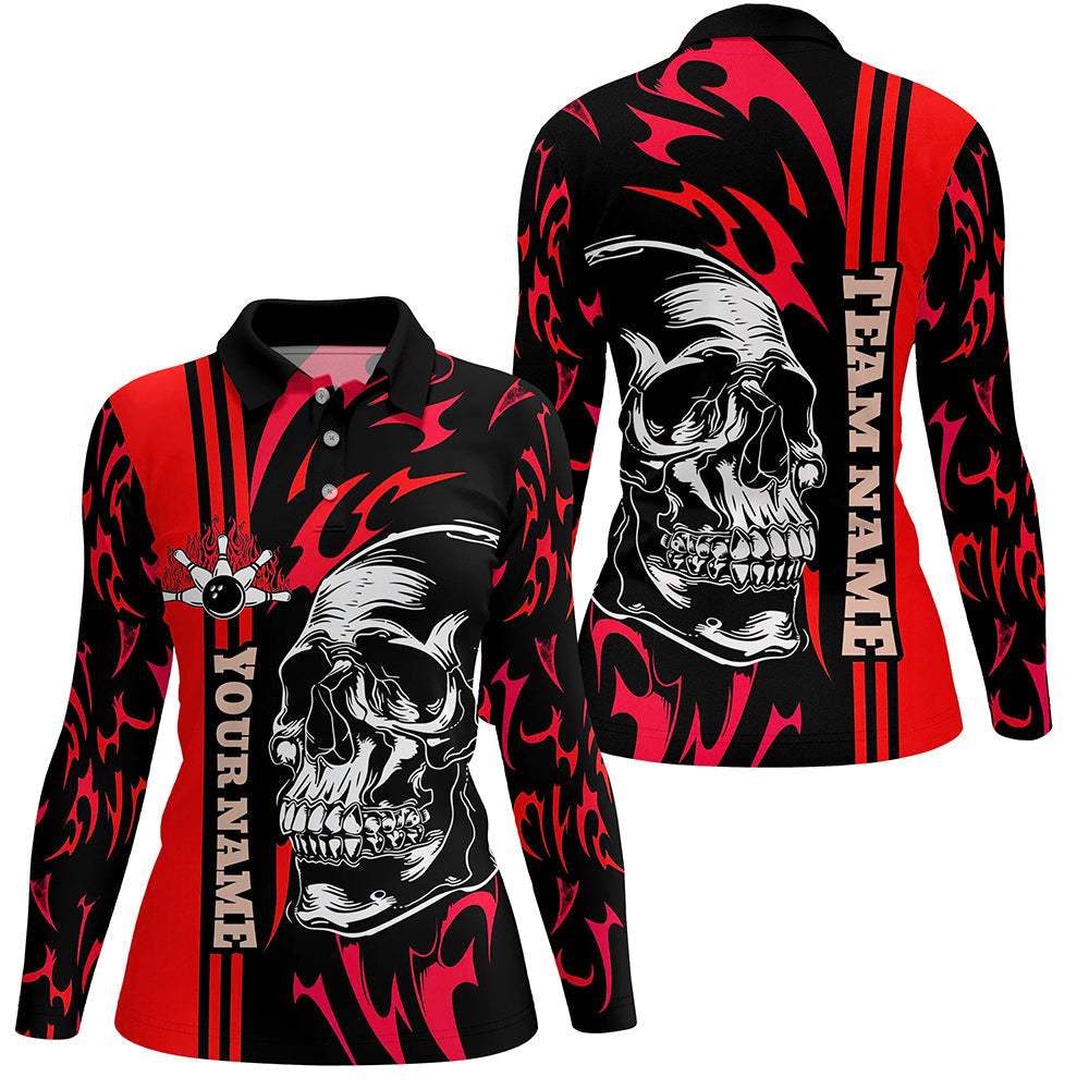 Bowling Shirts For Women Custom Black and Red flame skull Bowling ball and pins Team league Jerseys NQS8664