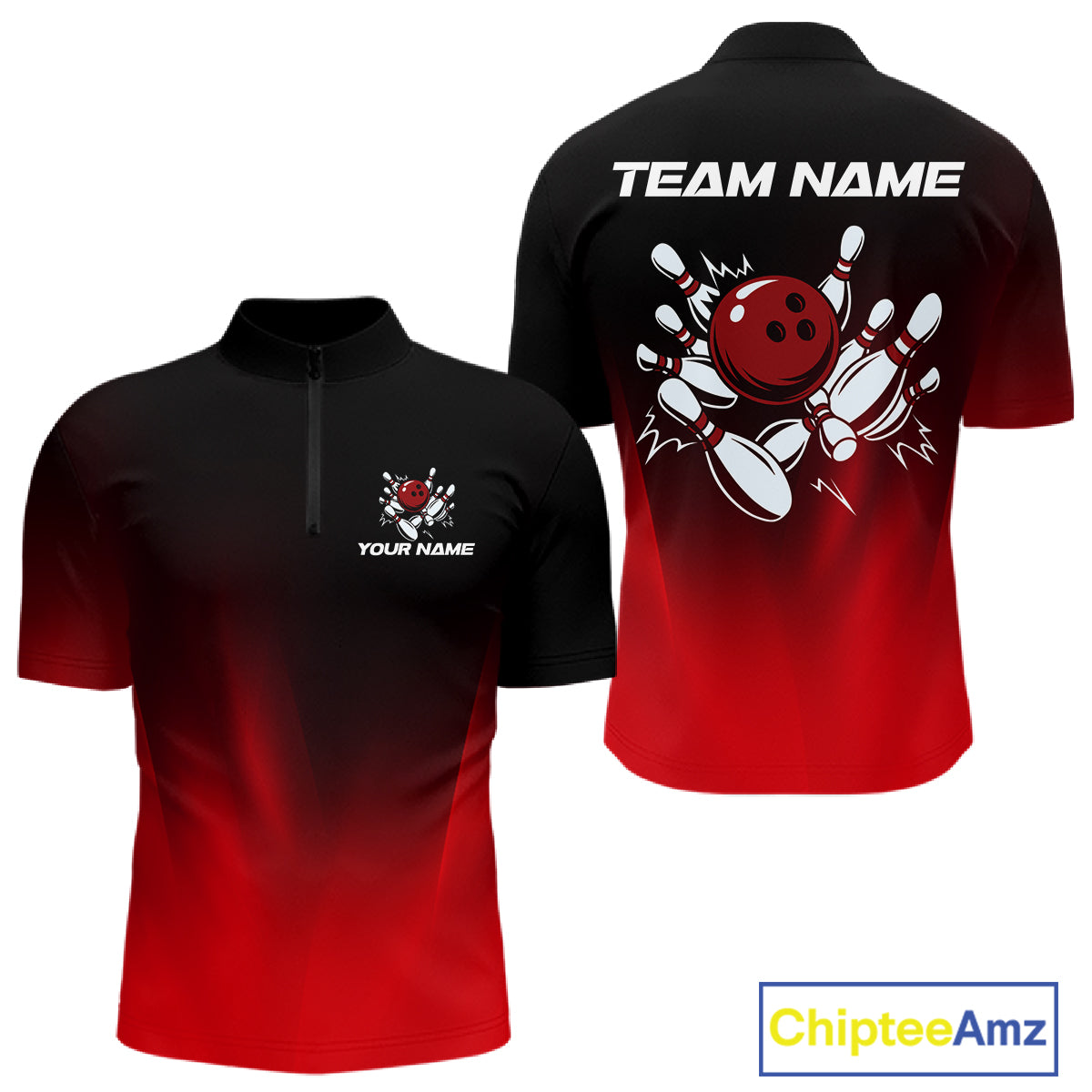 Custom Black and Red Bowling Polo, Quarter Zip Team Shirts For Men, Bowling Outfit Gift For Bowlers NQS10565