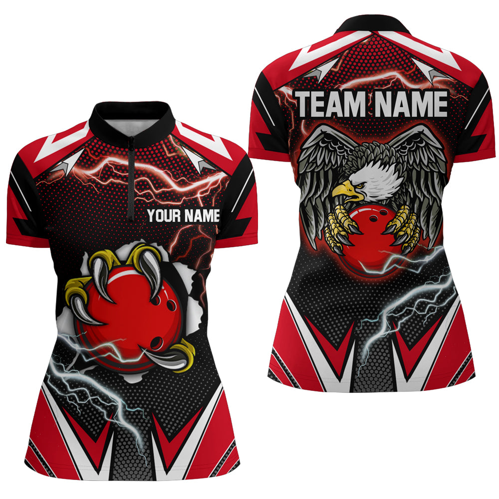 Custom Eagle Bowling Shirts for Men & Women Quarter Zip Bowling Team Jerseys Red BDT468