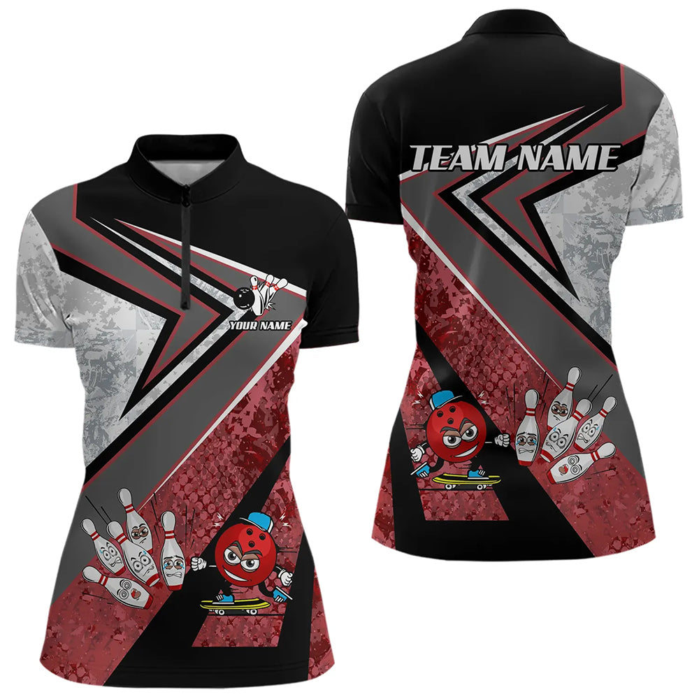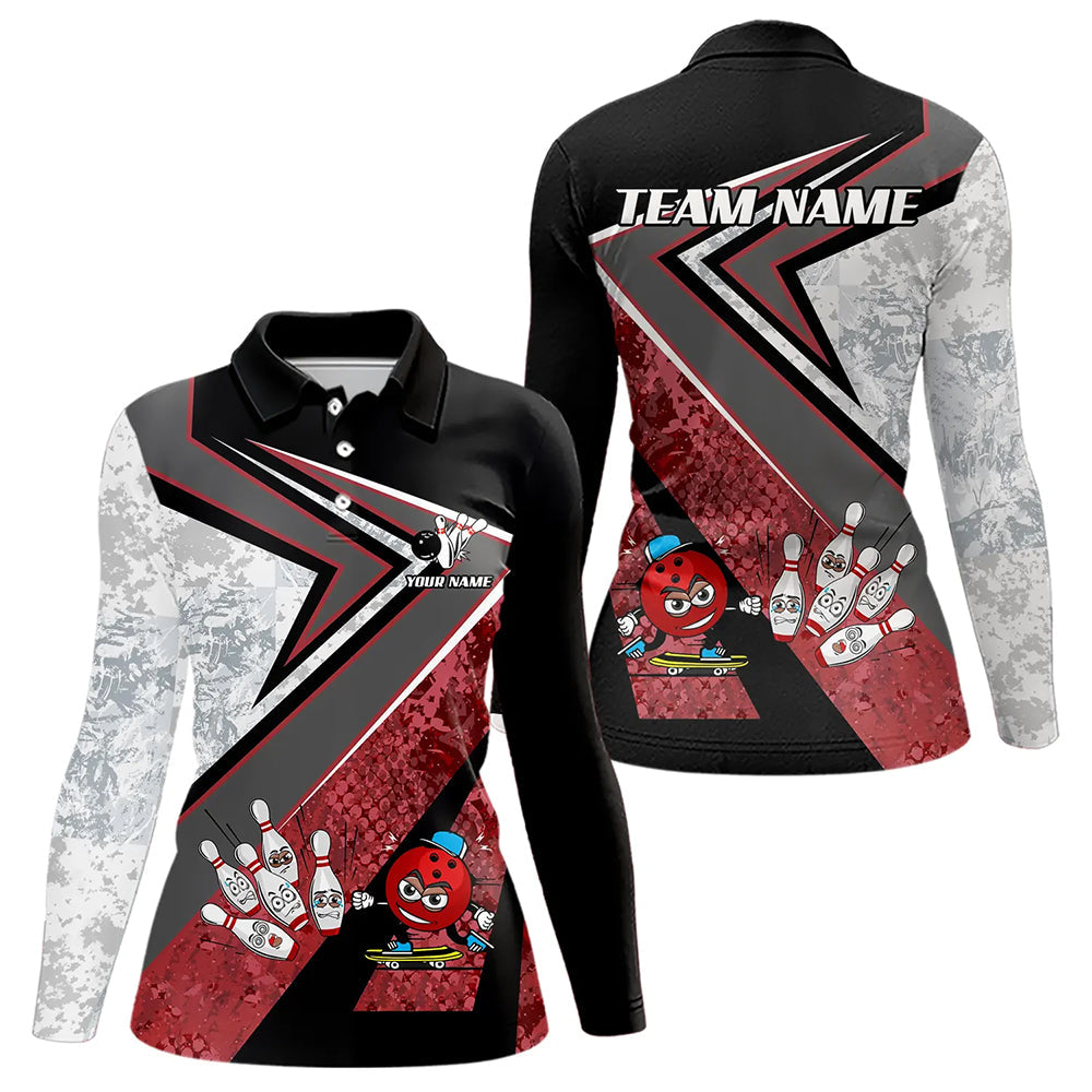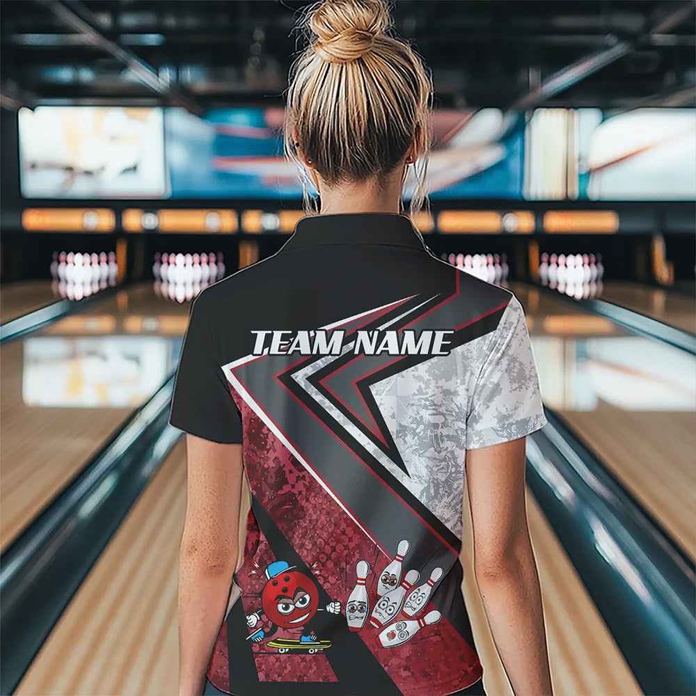 Funny Bowling ball and Pins Women bowling shirt Custom Camo Bowling Team Jersey, gift for Bowler | Red NQS9604