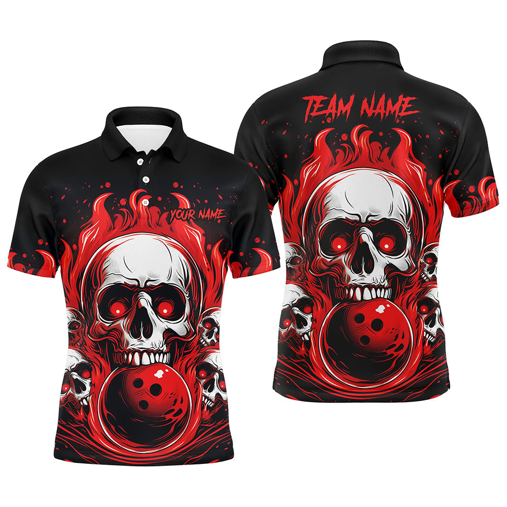 Custom Red Skull Bowling Team Shirts, Flame Bowling Jerseys Bowlers Shirts For Men And Women IPHW5841