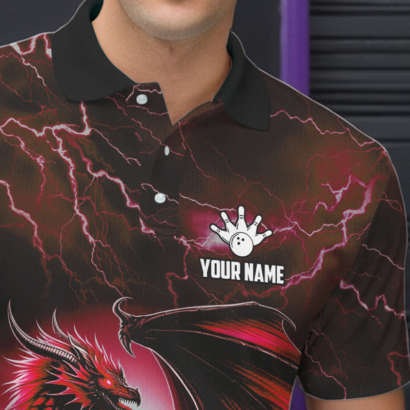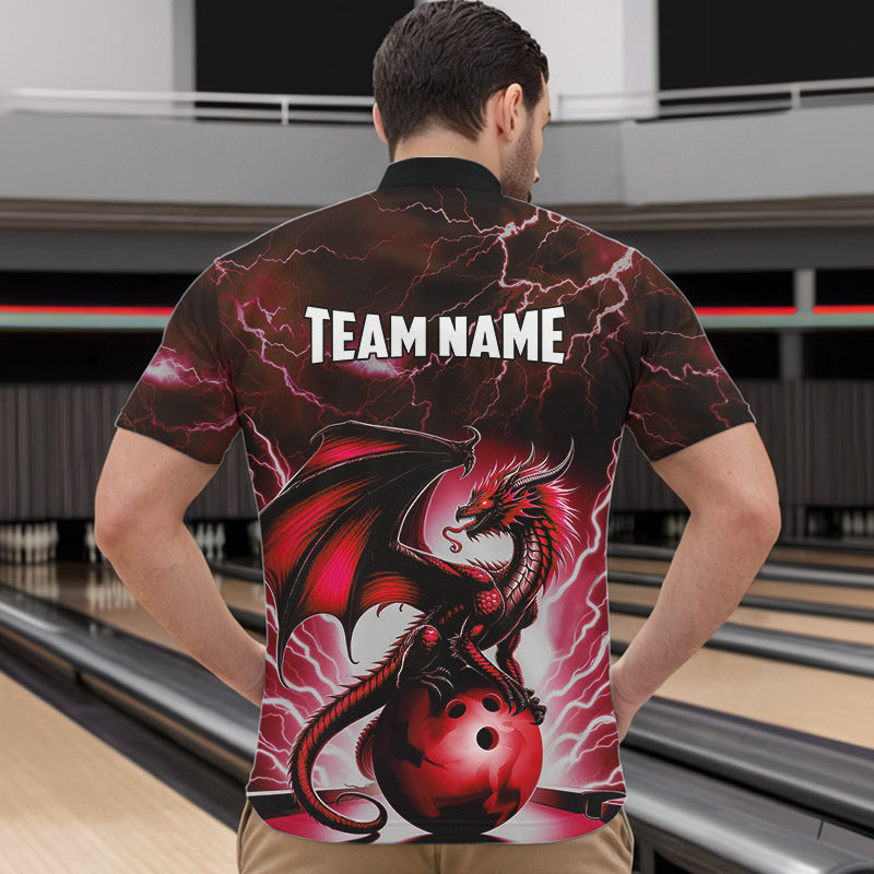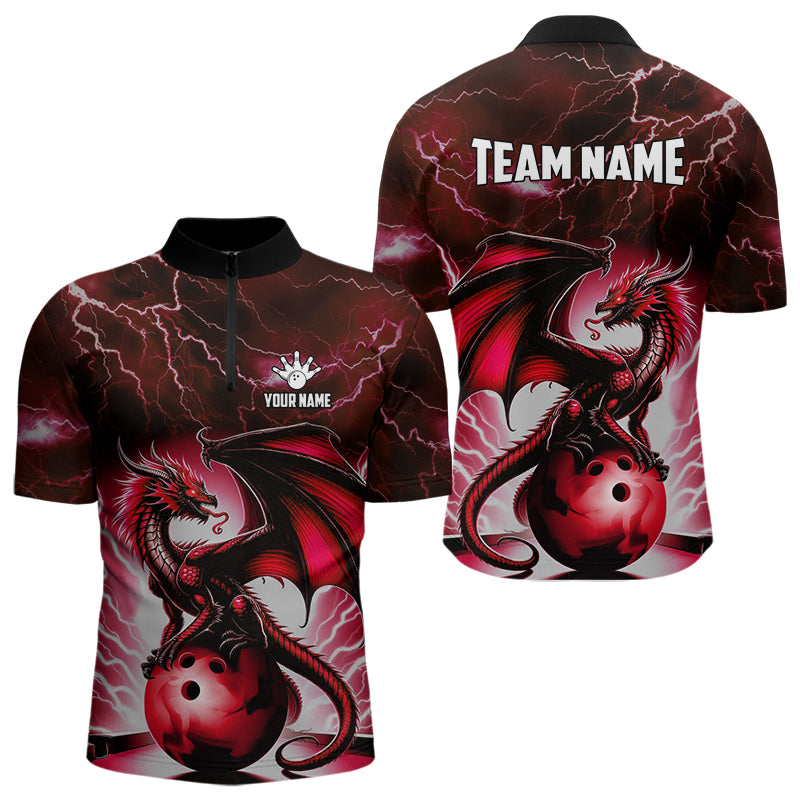Red Thunder Lightning Custom Dragon Bowling Shirts For Men, Bowling Team Jerseys Polo & 1/4 Zip TDM3679