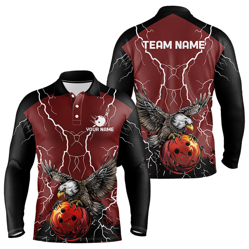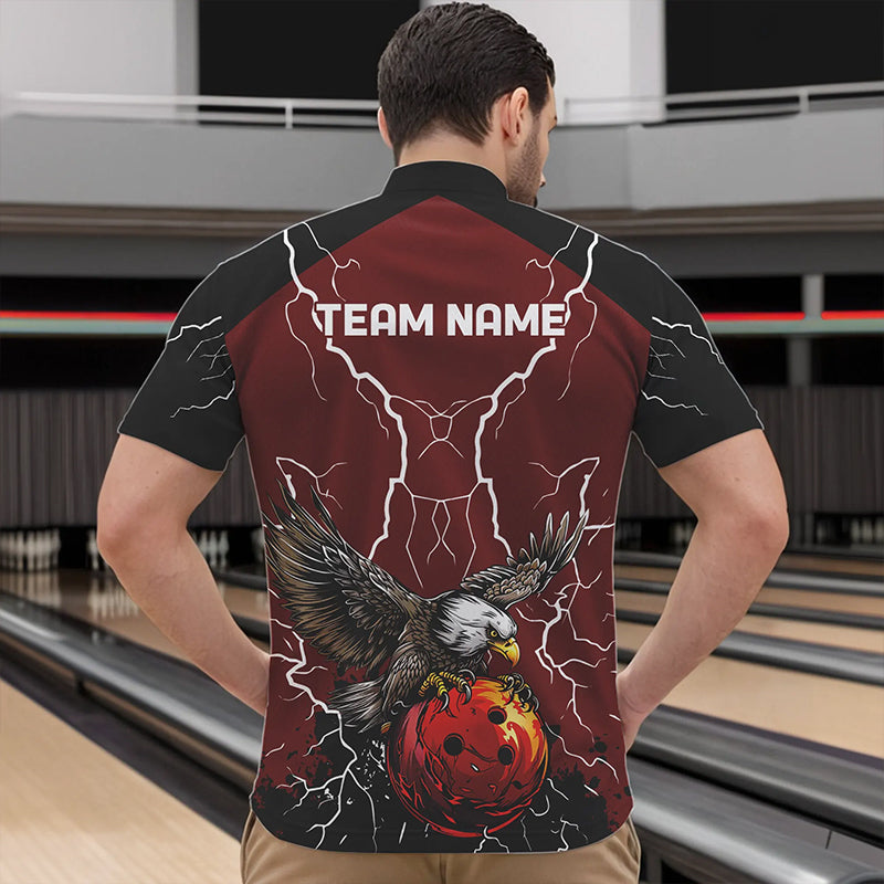 Men's bowling Polo, Quarter Zip shirts Custom Eagle bowling lightning storm team league jerseys | Red NQS9781
