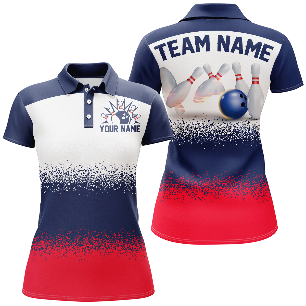Navy Red White Bowling Shirt For Men & Women Bowling Team Jersey Polo Bowling Outfit BDT575