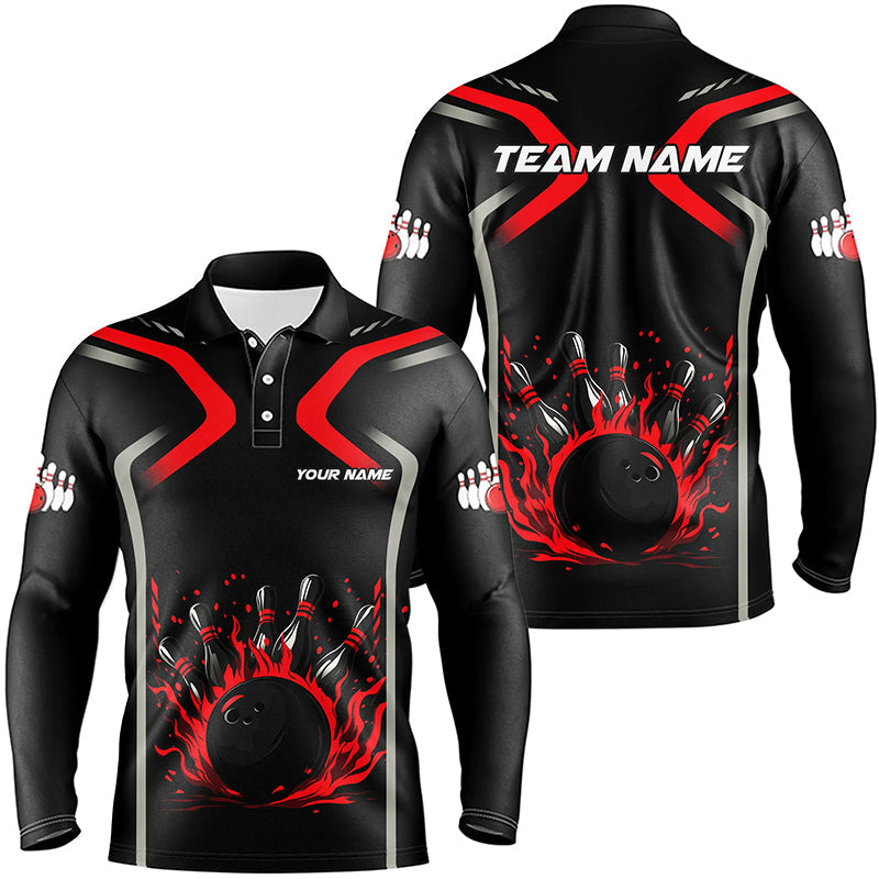 Personalized Red & Black Flame Bowling ball pins custom bowling shirts for Men, cool bowling jerseys NQS8341