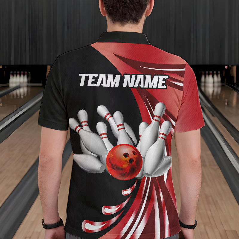 Personalized Red Bowling Team Jersey For Men & Women Custom Bowling Polo Shirt BDT457