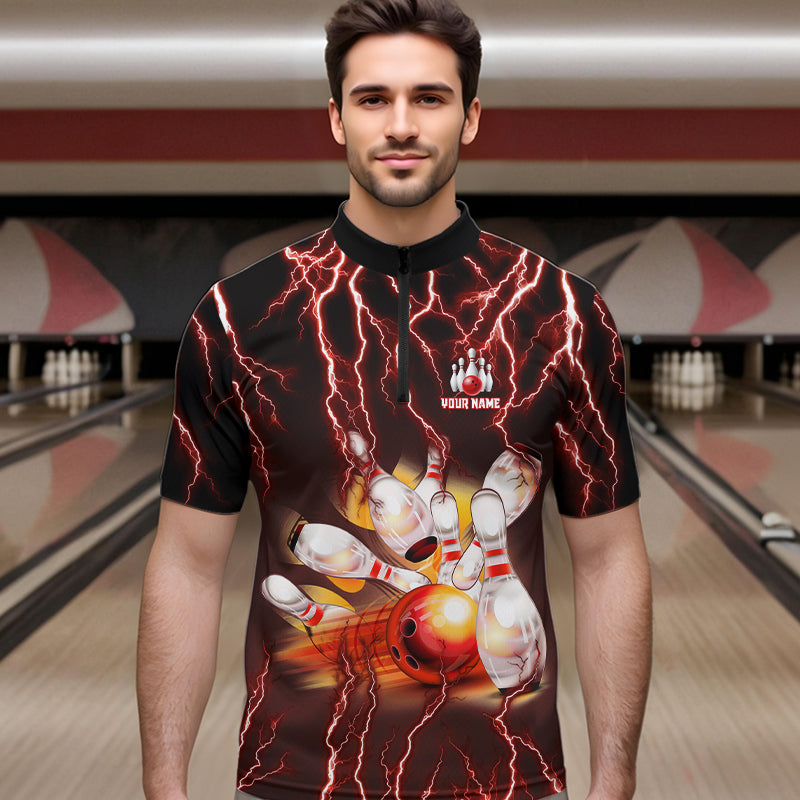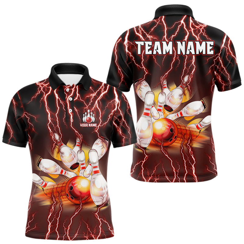 Personalized Red Lightning Thunder Bowling Shirt For Men Custom Bowling Team bowling attire for men NQS9793