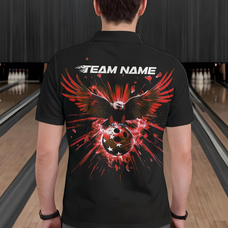 Black And Red Eagle Break Glass Custom Bowling Polo Shirts For Men, Bowling Team Shirt IPHW8399