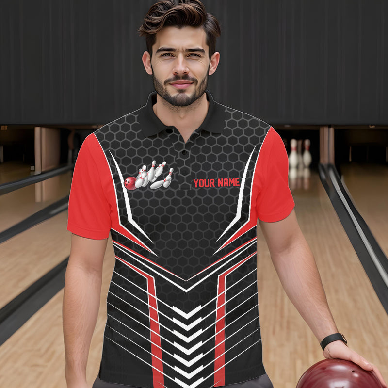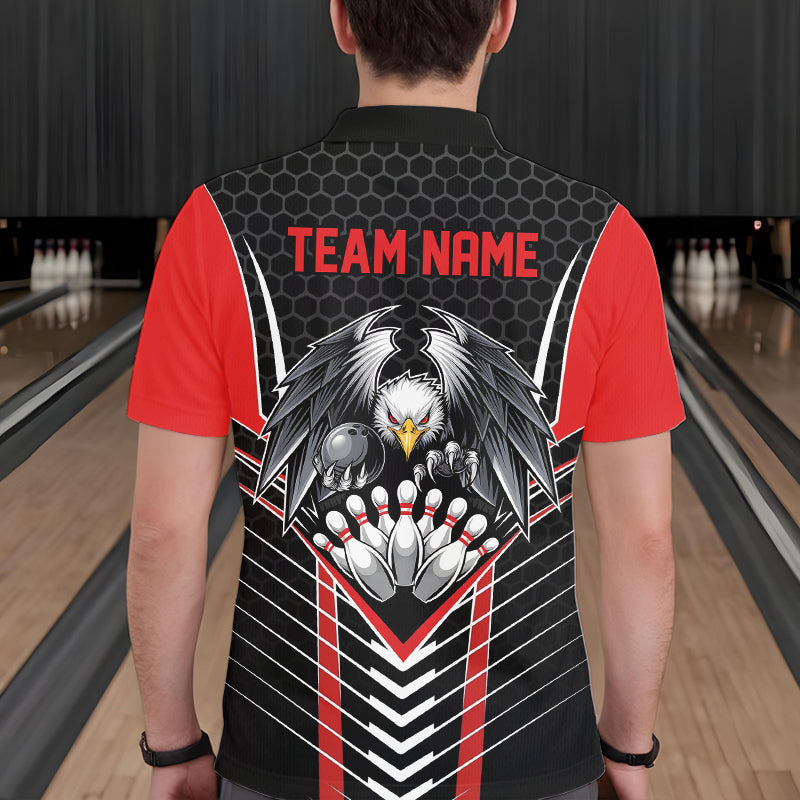 Custom Black And Red Eagle Bowling Jerseys, Bowling Team Men Polo Shirts Bowlers Outfits IPHW8748