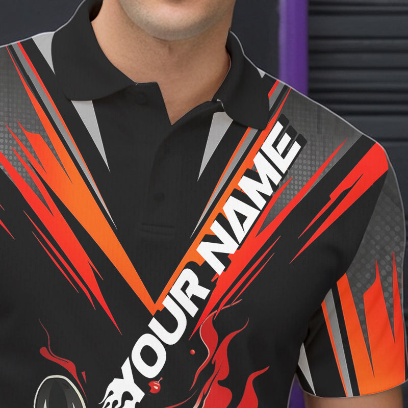 Custom Black And Red Flame Bowling Men Polo Shirts, Fire Bowling Tournament Team Outfits IPHW8773
