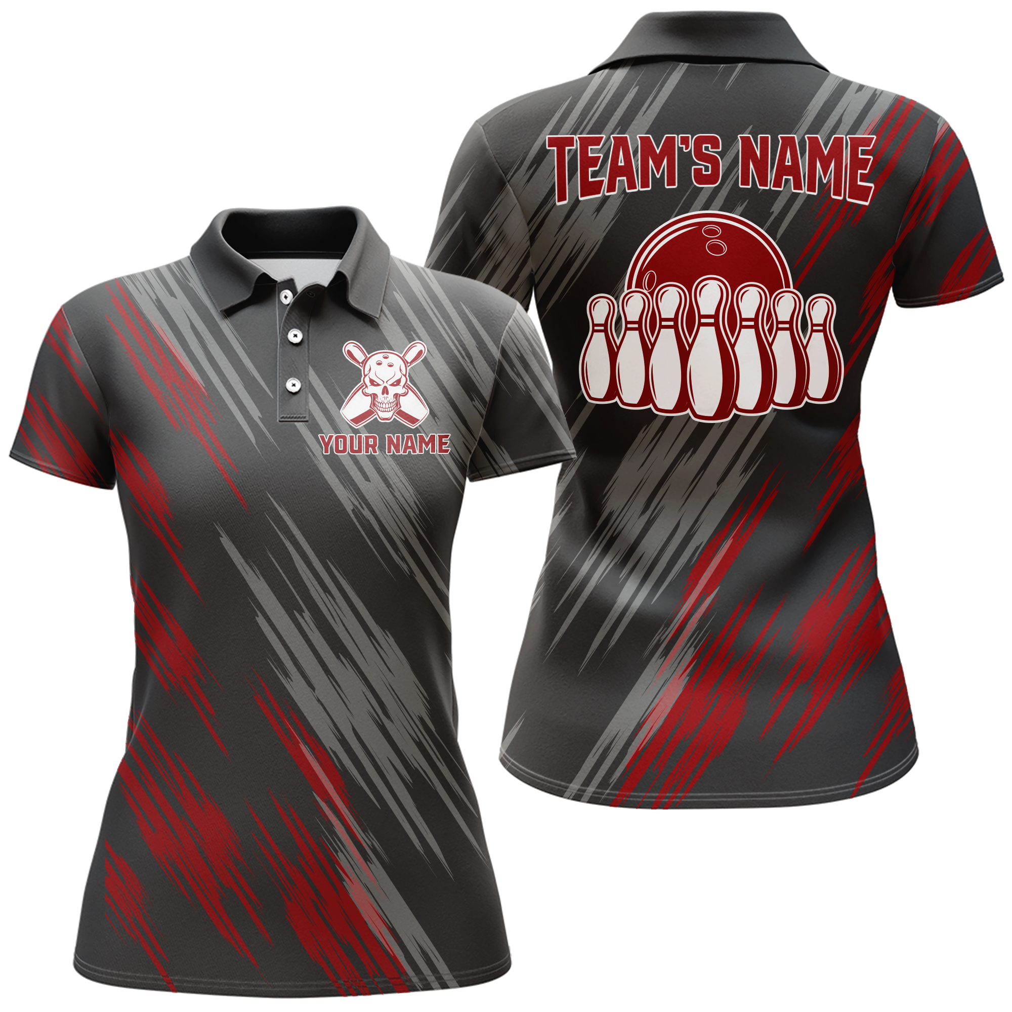 Skull Bowling Polo Shirt For Women Black&Red Bowling Jersey Ladies Bowling Team Shirt BDT157