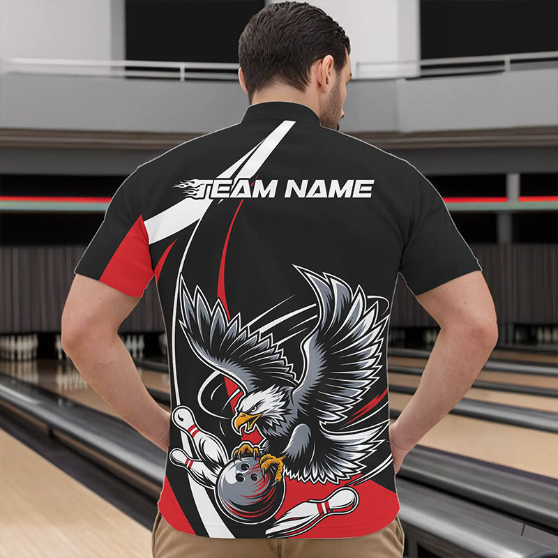 Custom Black And Red Eagle Bowling Men Quarter-Zip Shirts, Eagle Bowling Team Jerseys IPHW8732