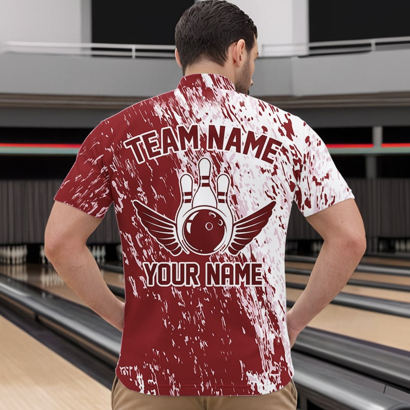 Personalized White And Brick Red Bowling Team Men Quarter-Zip Shirts, Bowling Tournament Outfits IPHW8746