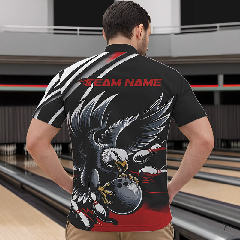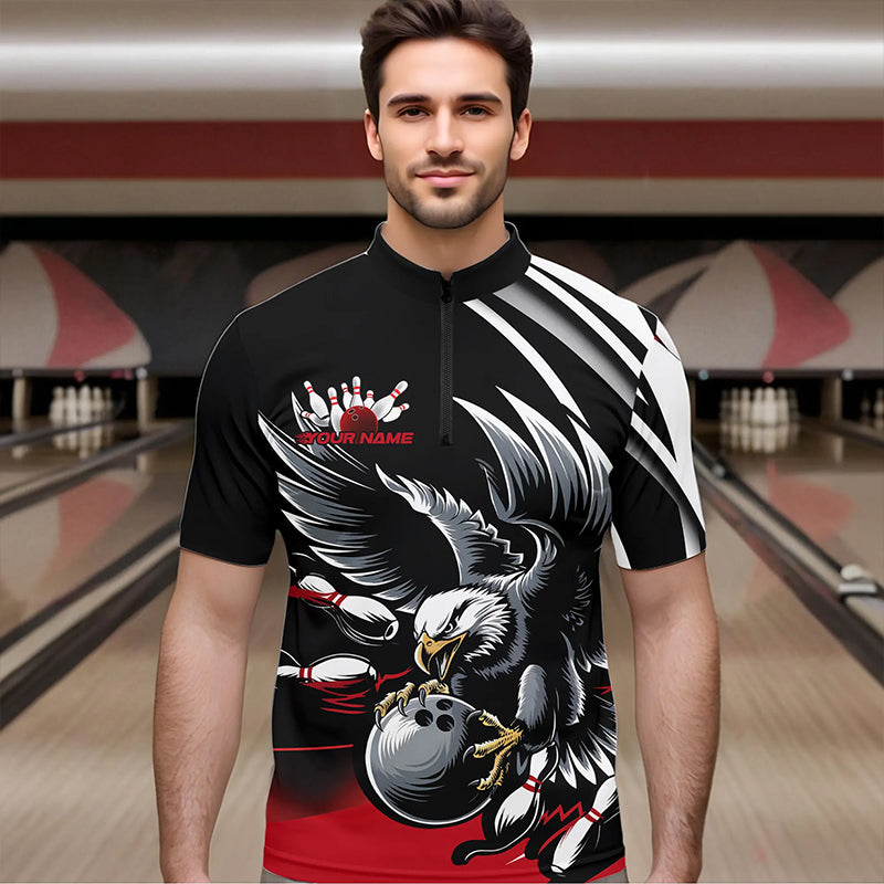 Custom Black And Red Eagle Bowling Jerseys, Bowling Team Men Quarter-Zip Shirts Bowlers Outfits IPHW8886