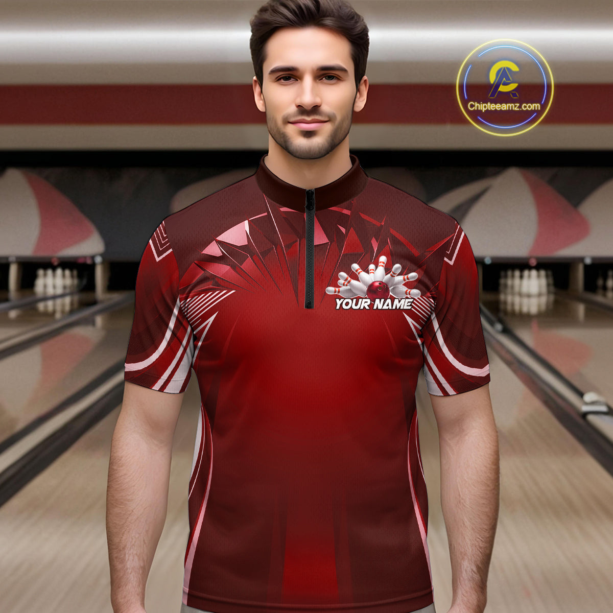Custom Red Bowling Tournament Bowling Quarter-Zip Shirts For Men With Team Name IPHW9282