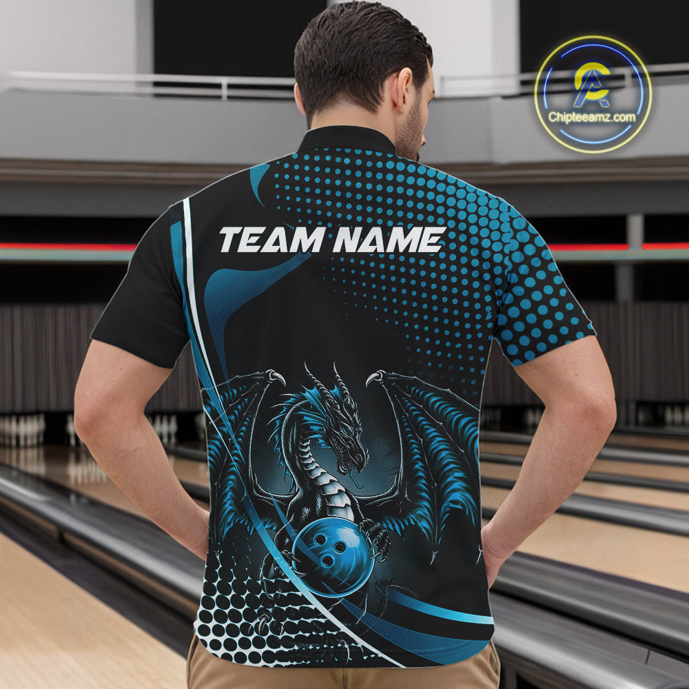 Custom Red Dragon Bowling Jerseys, Mystical Bowling Team Uniform Quarter-Zip Shirts For Men IPHW9536