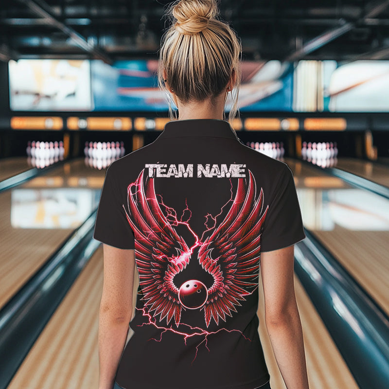 Red Thunder Lightning Bowling Wings Custom Bowling Team Quarter-Zip Shirts For Women IPHW8394