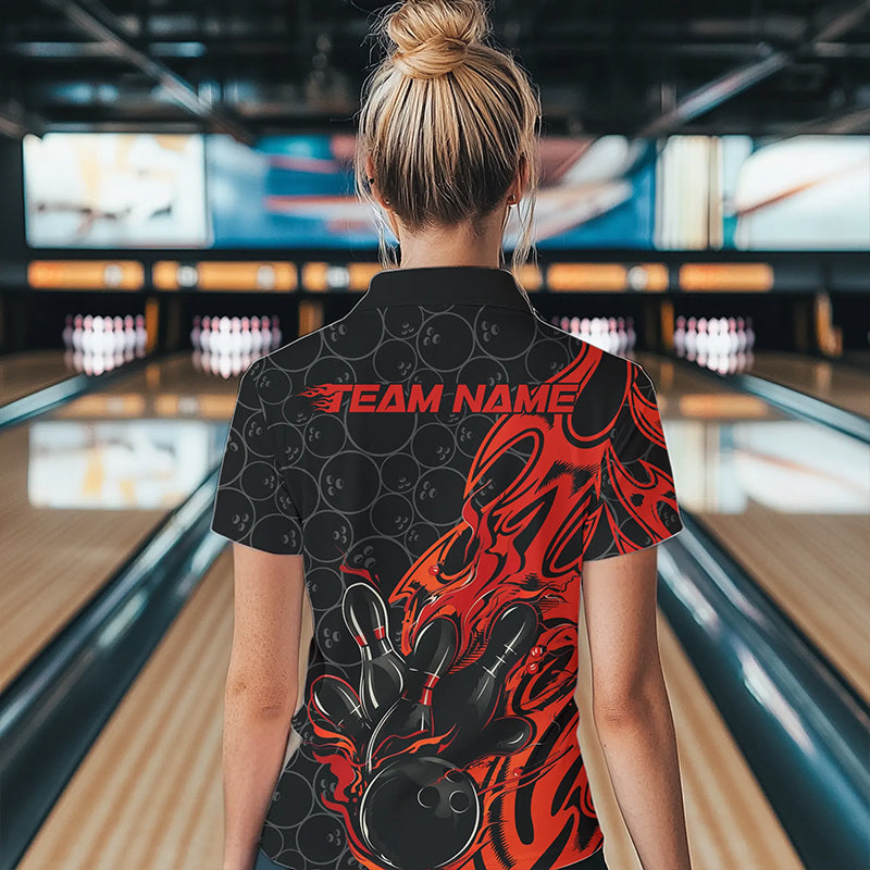 Custom Black And Red Tribal Flame Bowling Women Quarter-Zip Shirts, Bowling Pattern Outfits IPHW8814