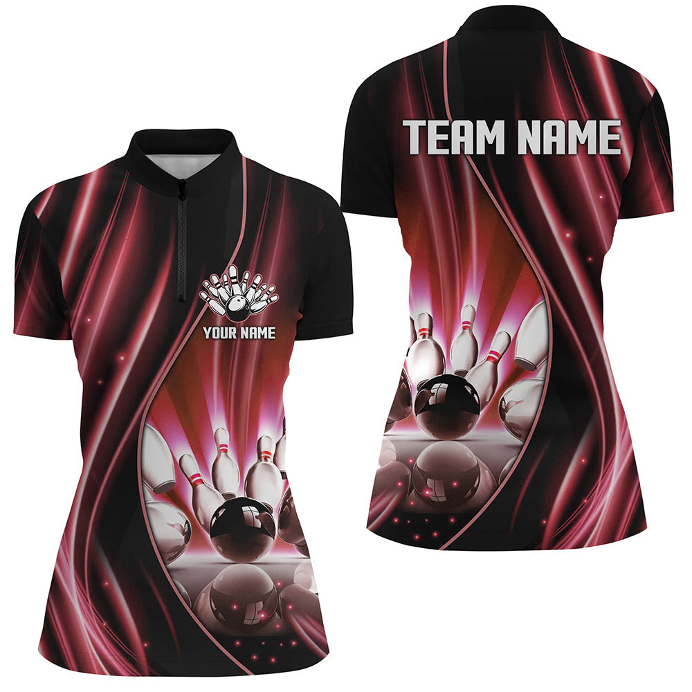 Red and black light Women Polo, 1/4 Quarter Zip Shirts Custom bowling team jerseys, gift for bowlers NQS7860