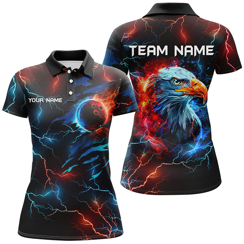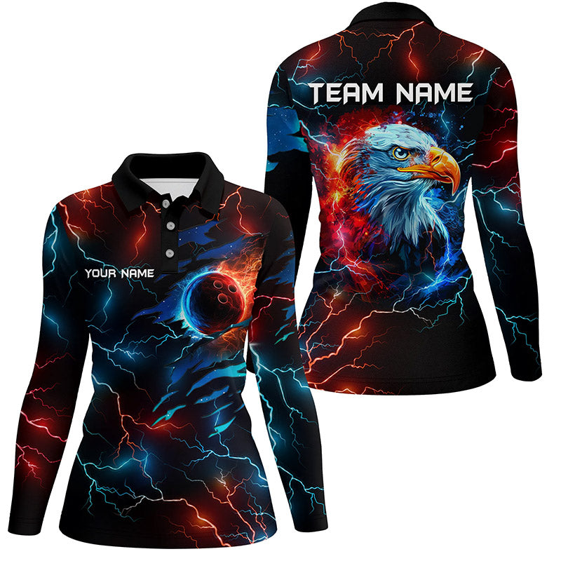 Red and Blue lightning thunder bowling Eagle custom Women Bowling Polo, Quarter Zip Shirt team jerseys NQS7890