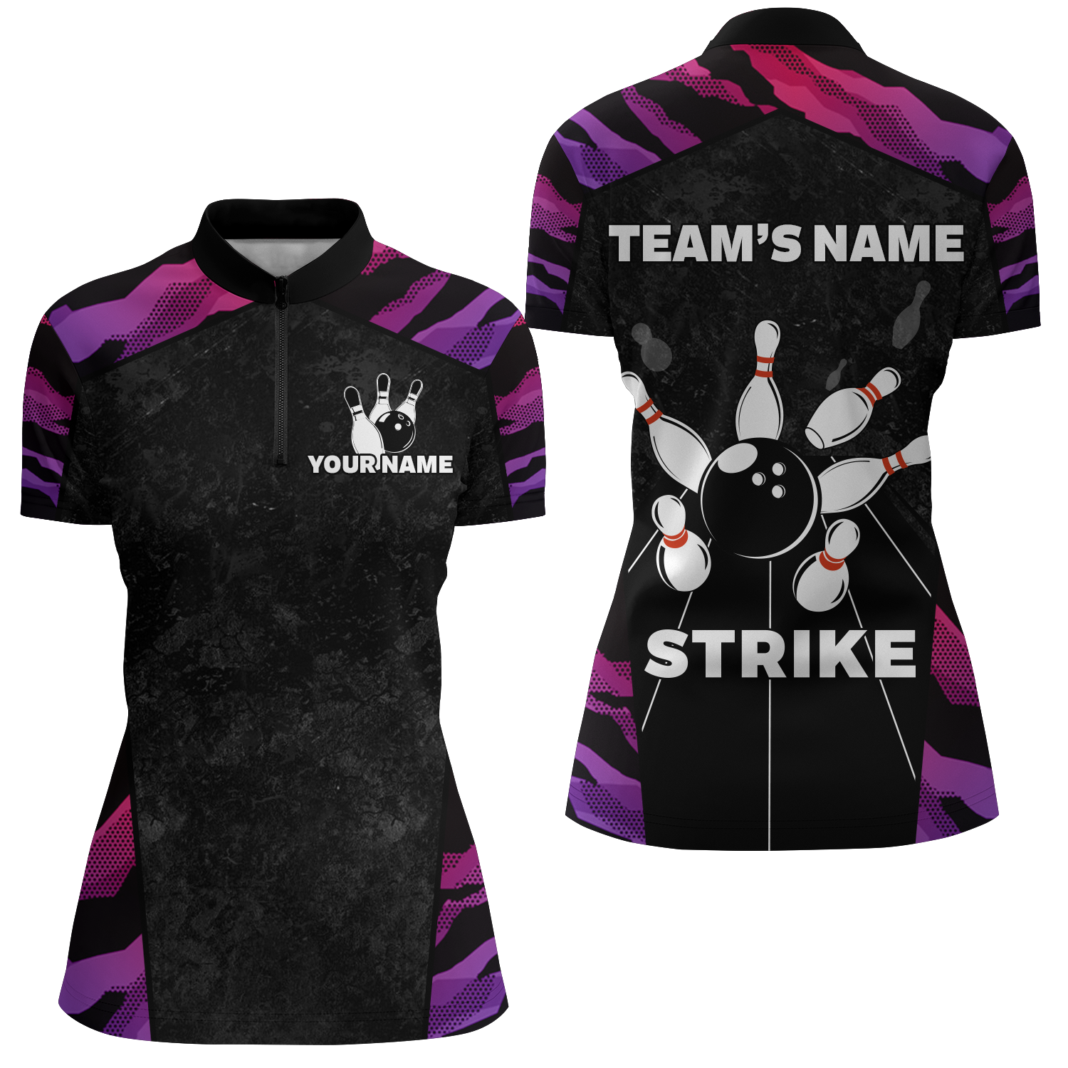 Red And Purple Bowling Shirts For Men Women Custom Bowling Quarter-Zip Shirts Team Bowling Jersey BDT448