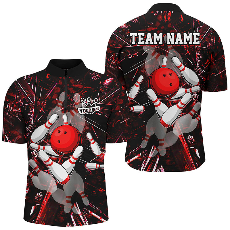 Red Camo Bowling Polo, Quarter zip Shirt For Men custom bowling team jerseys, bowling league shirts NQS8463