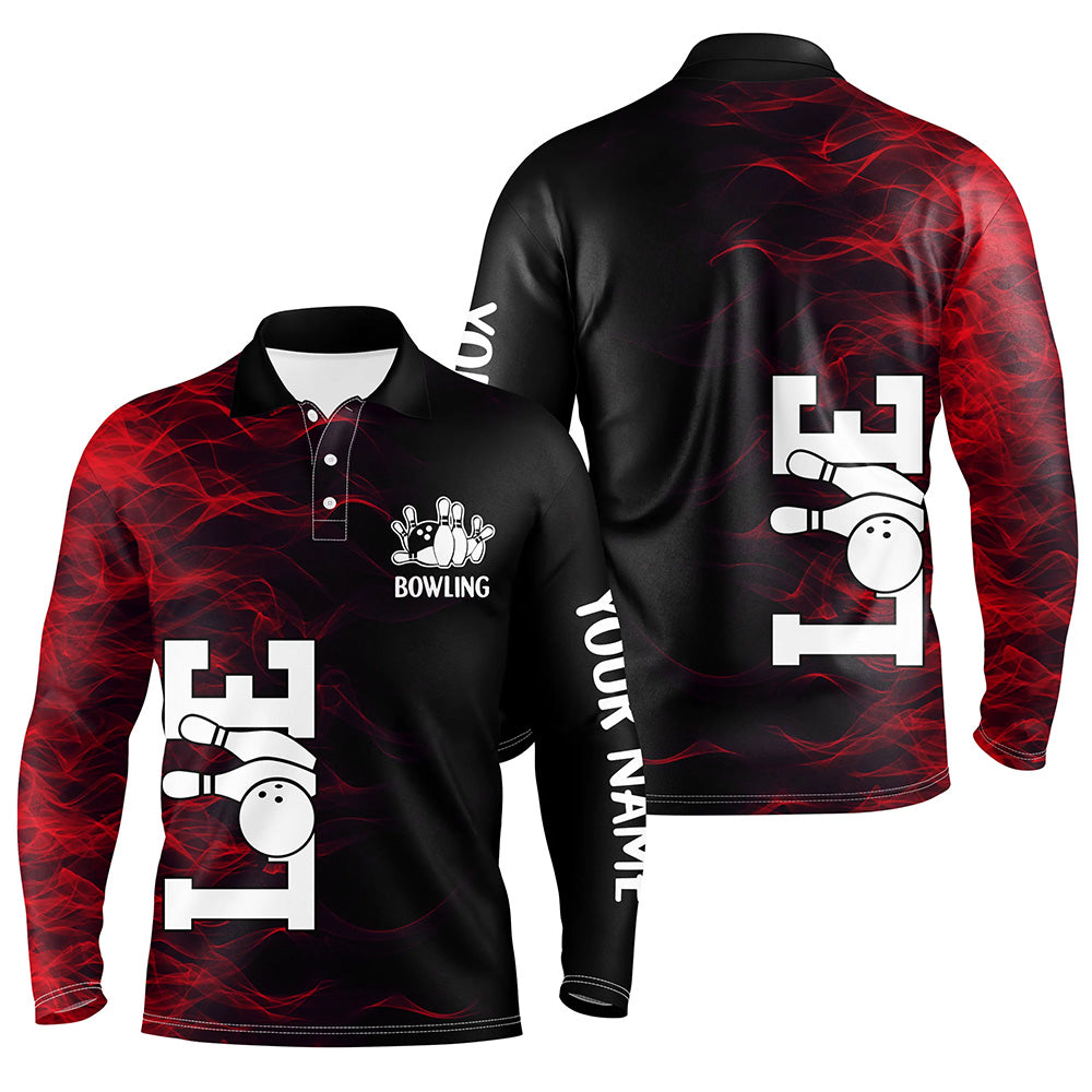 Red Flame Bowling Custom Men Bowling Polo, Quarter zip Shirts Bowling Team Jerseys Tournament NQS8411