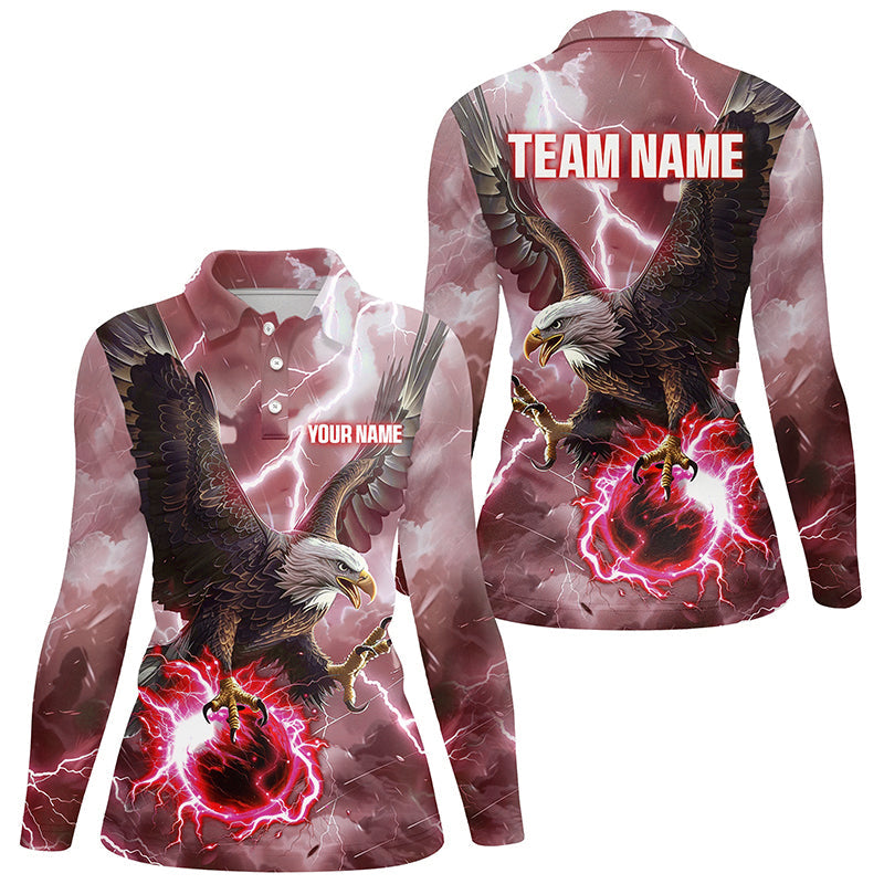Red lightning thunder bowling Eagle custom Women Bowling Polo, Quarter Zip Shirts, bowlers jerseys NQS8180
