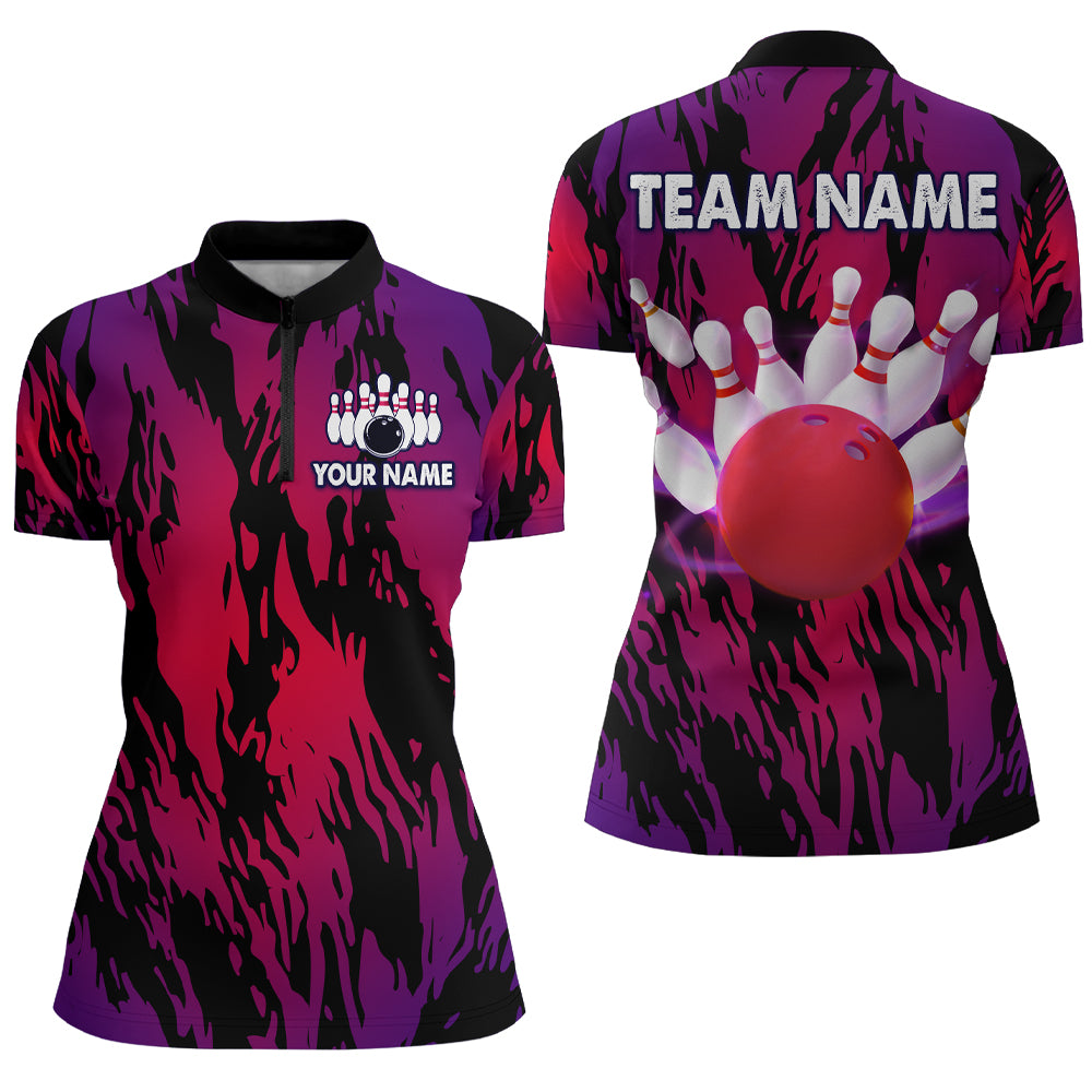 Red&Purple Camo Bowling Shirt Unisex Bowling Team Jersey Men & Women Custom Bowling 1/4 Zip BDT558