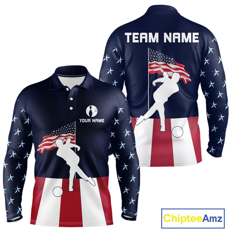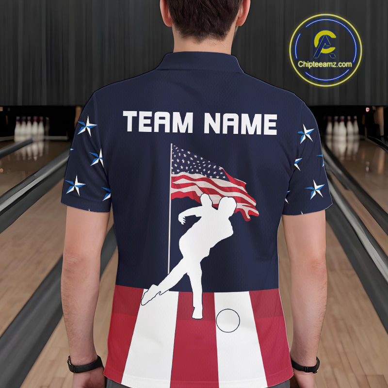 Red, White and Blue American Flag Bowling Team Shirts For Men Custom Patriotic Bowling Jerseys NQS10220