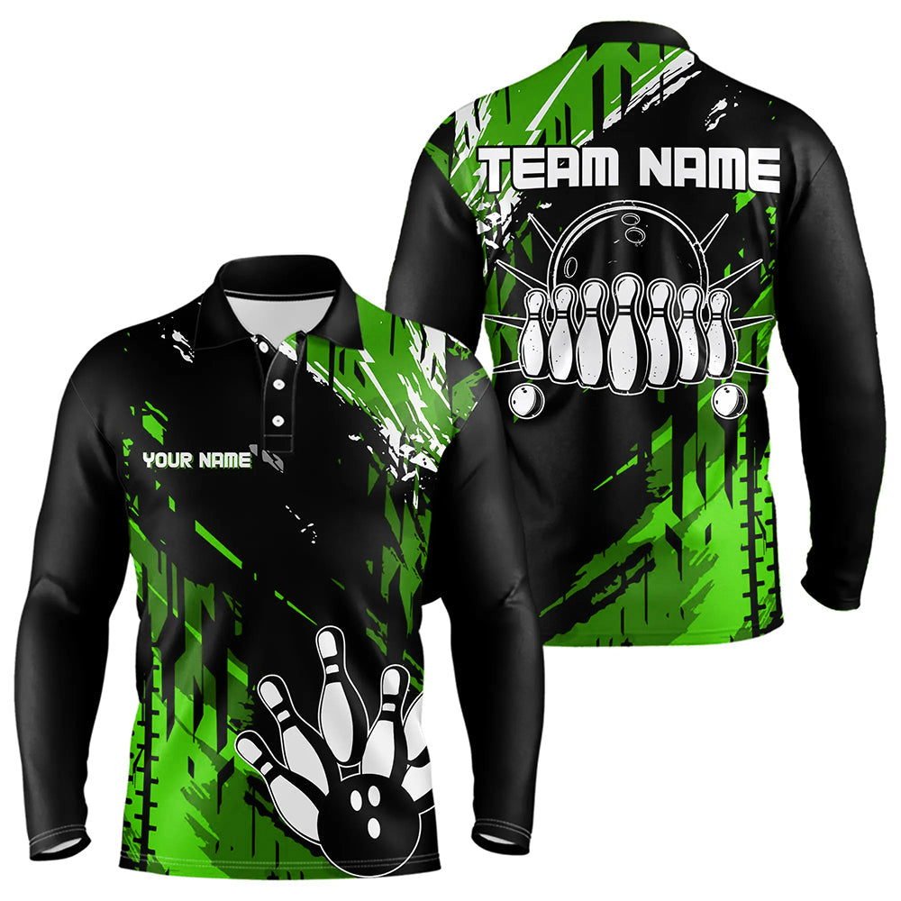 Black and Green Mens bowling shirts Custom retro bowling ball and pins bowling team league jerseys NQS9475