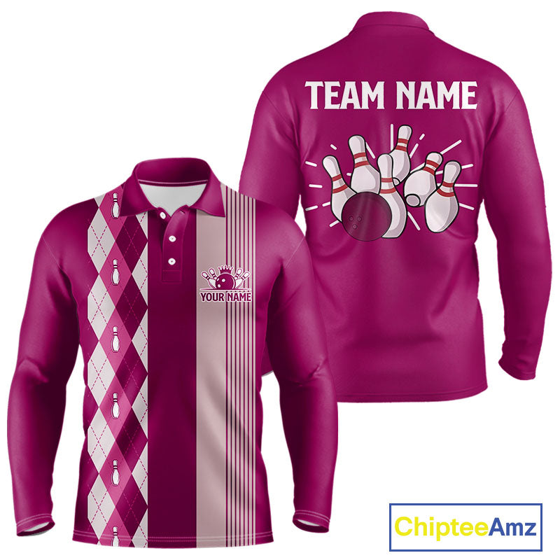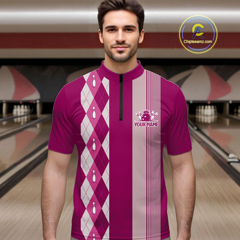 Retro Pink argyle pattern Bowling shirts For Men custom bowling team jerseys Bowler Outfits NQS10403