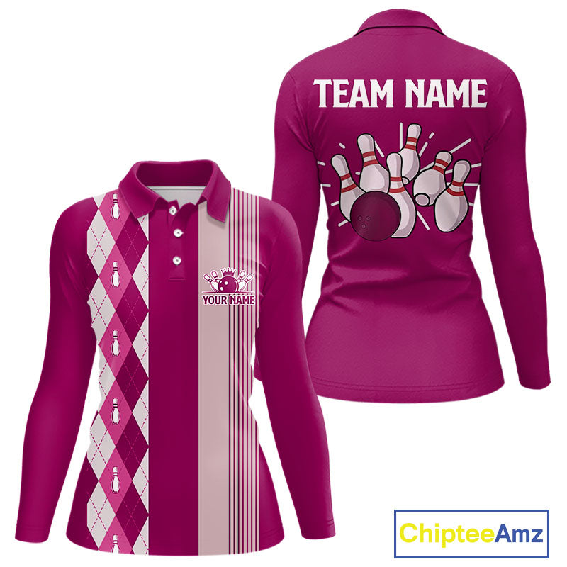 Retro Pink argyle pattern Bowling shirts For Women custom bowling team jerseys Bowler Outfits NQS10403