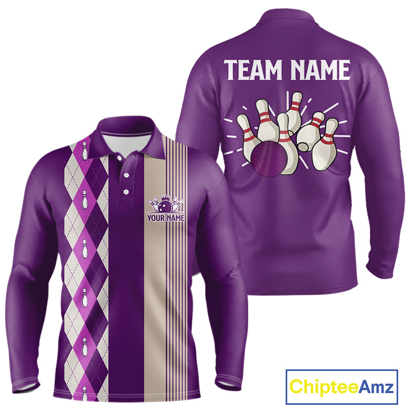 Retro Purple argyle pattern Bowling shirts For Men custom bowling team jerseys Bowler Outfits NQS10275