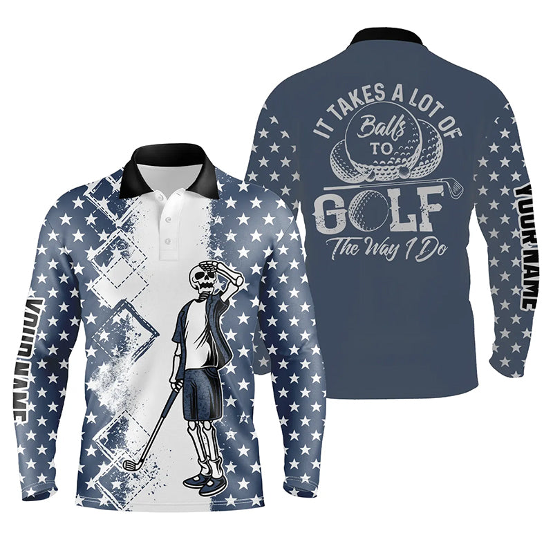 American flag skull golf blue Mens golf polo shirt custom it takes a lot of balls to golf the way I do NQS5610