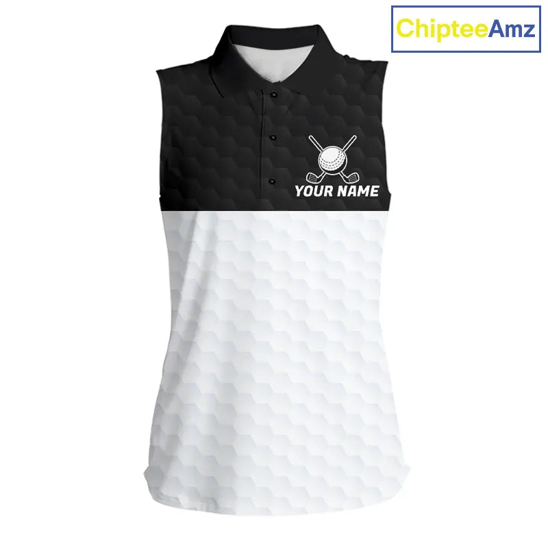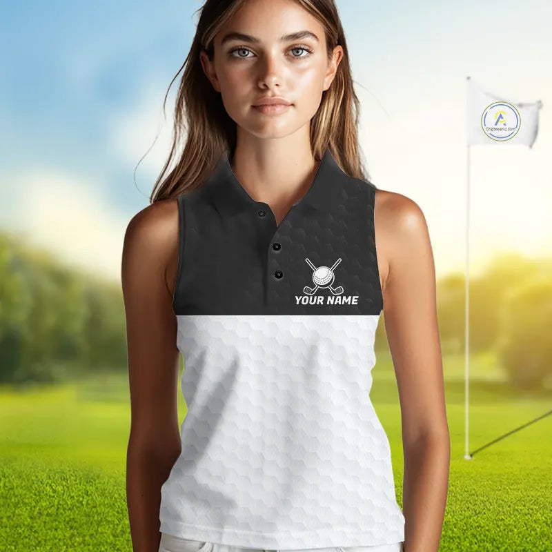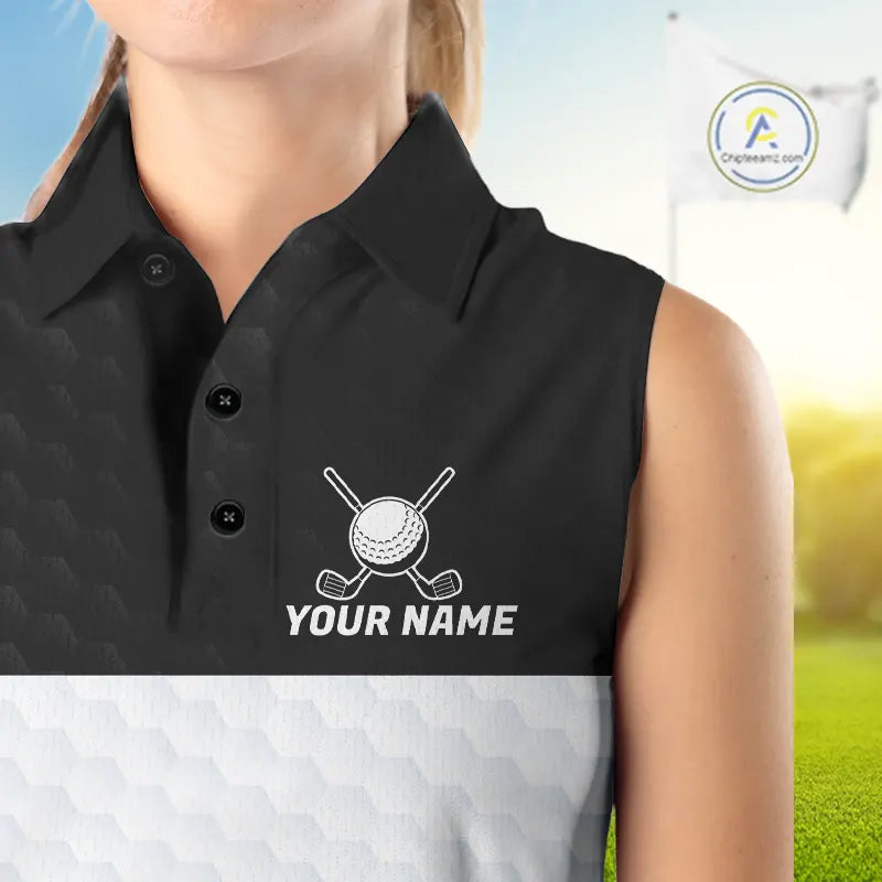 Black and White Sleeveless Golf Polo shirt Custom golf attire for ladies, best golf gifts for women NQS11702