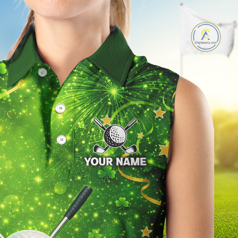 Happy St Patrick's Day Green and Gold Shamrock Ladies Sleeveless Golf Shirt Custom Women Golf Clothes NQS11629