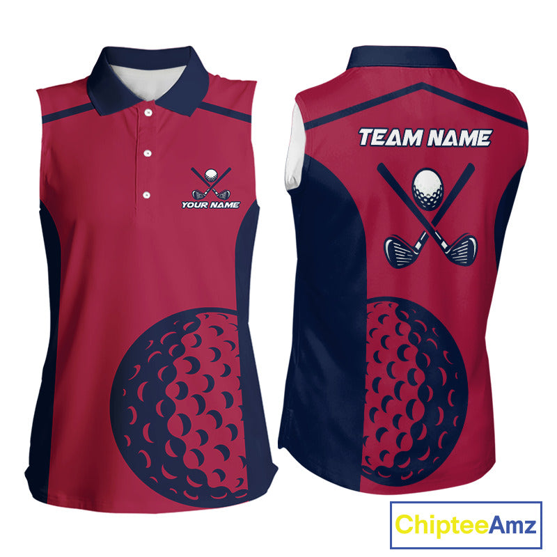 Red, white & blue US flag Womens golf shirts sleeveless custom patriotic golf attire for ladies NQS11387