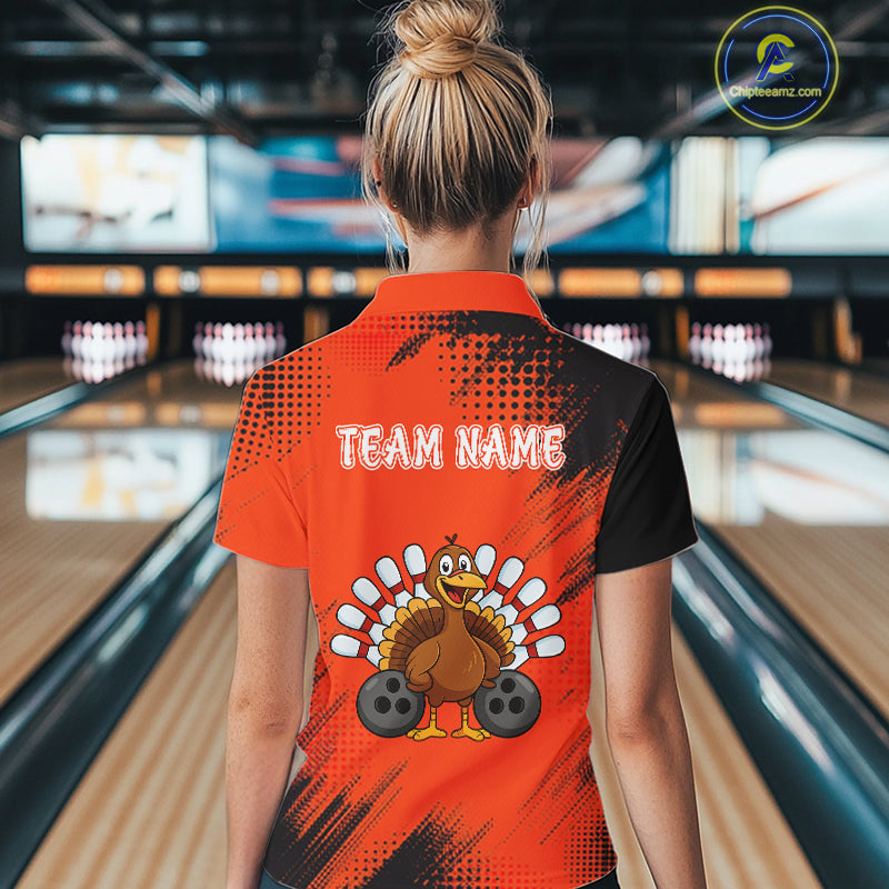 Custom Orange Turkey Bowling Shirt For Women, Thanksgiving Bowling Team Jersey Bowler Outfit NQS10369