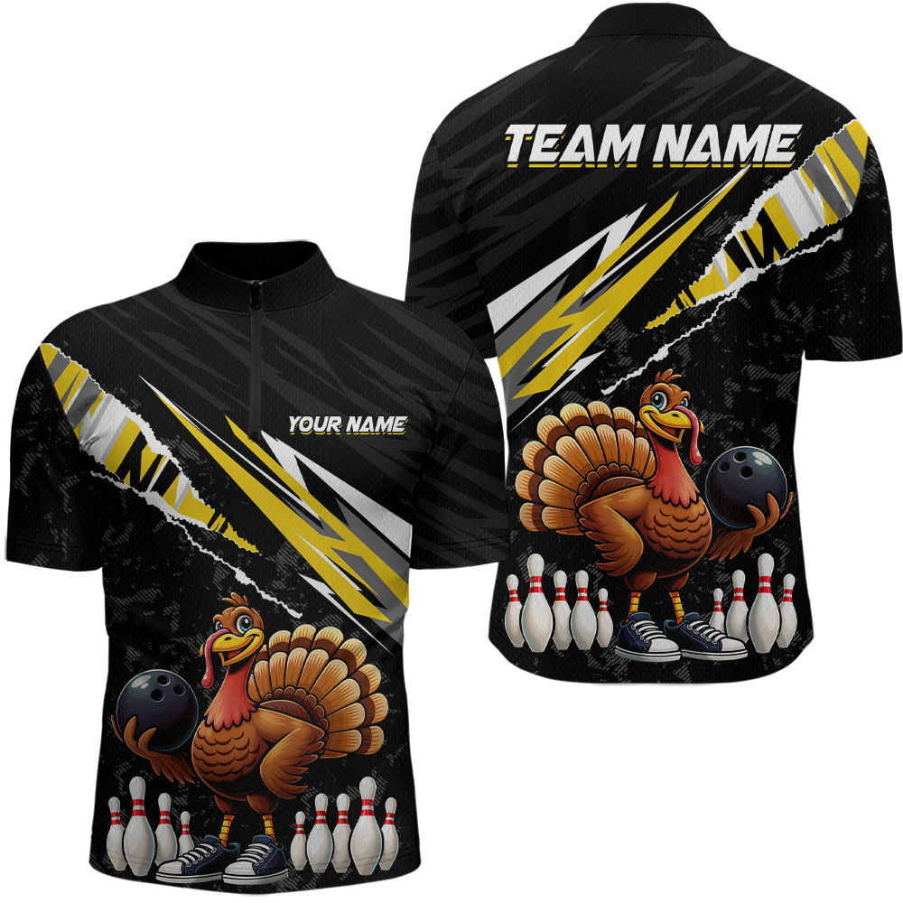 Custom Yellow Funny Turkey Bowling Jersey for Men Thanksgiving Bowling Shirts Polo & 1/4 Zip HNT117