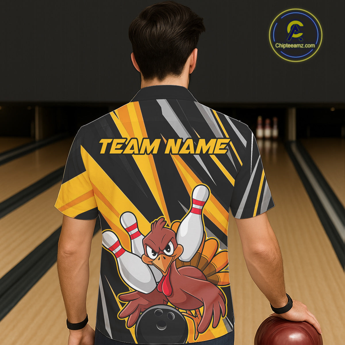 Custom Funny Turkey Men And Women Team Bowling Shirts, Yellow Thanksgiving Bowling Fall Outfits IPHW7661