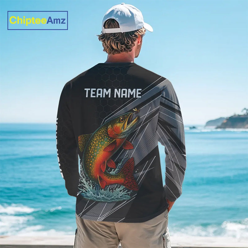 Personalized Black camo Brook Trout Fishing Jersey, Brook Trout Long Sleeve Fishing Tournament Shirts NQS11033