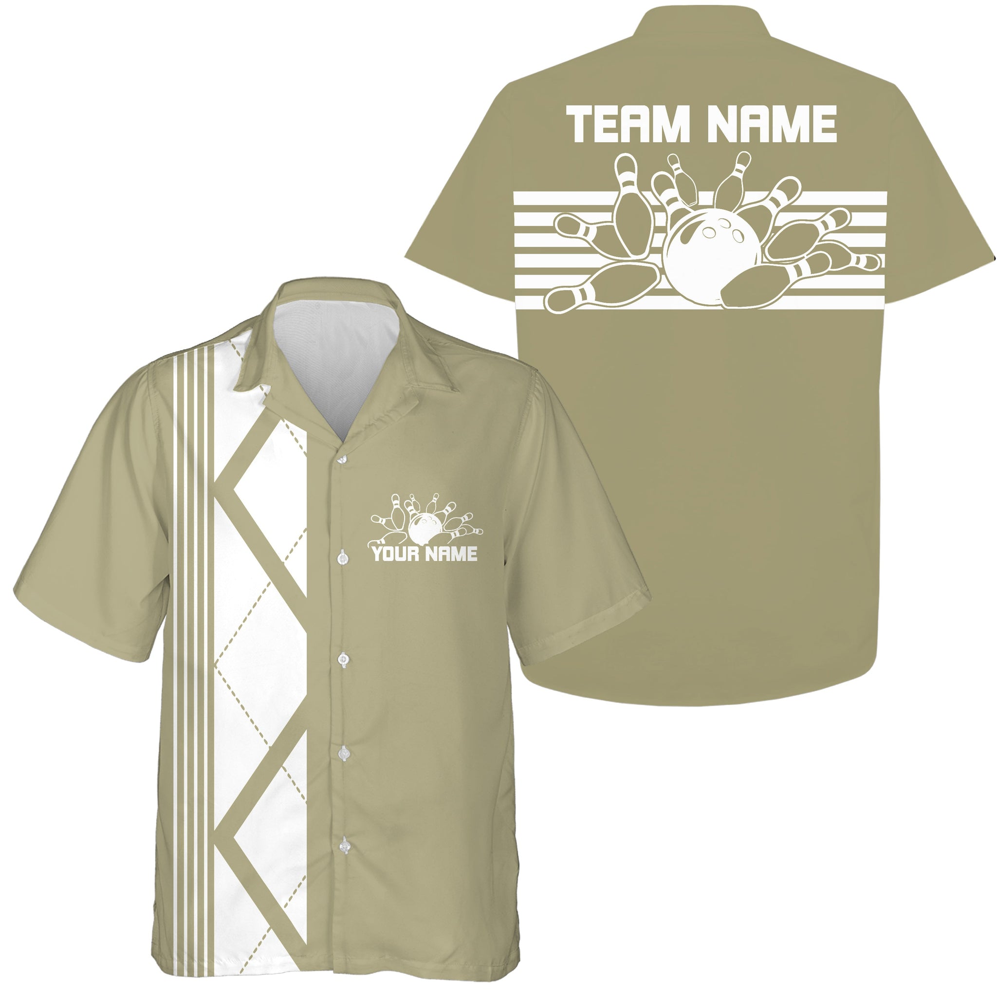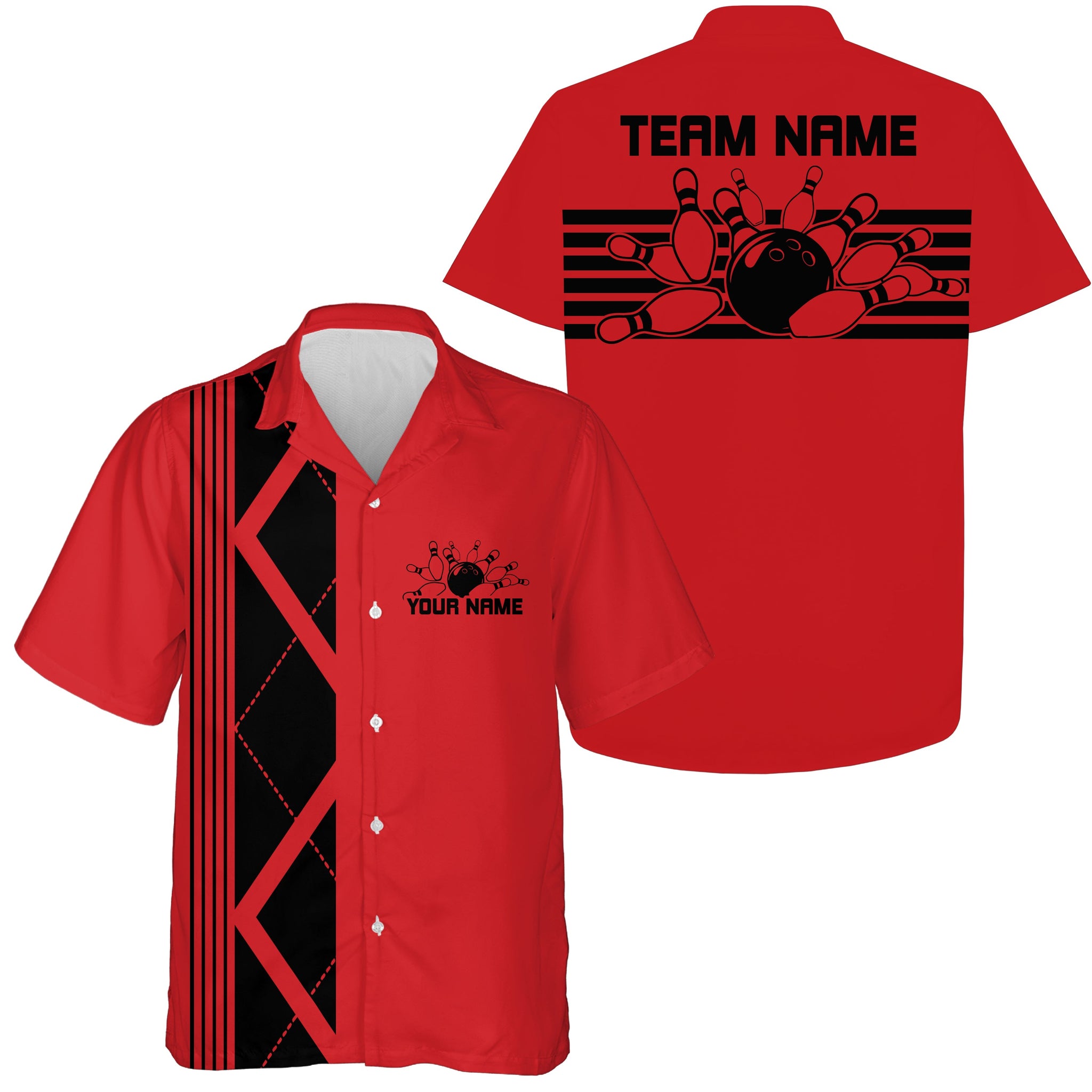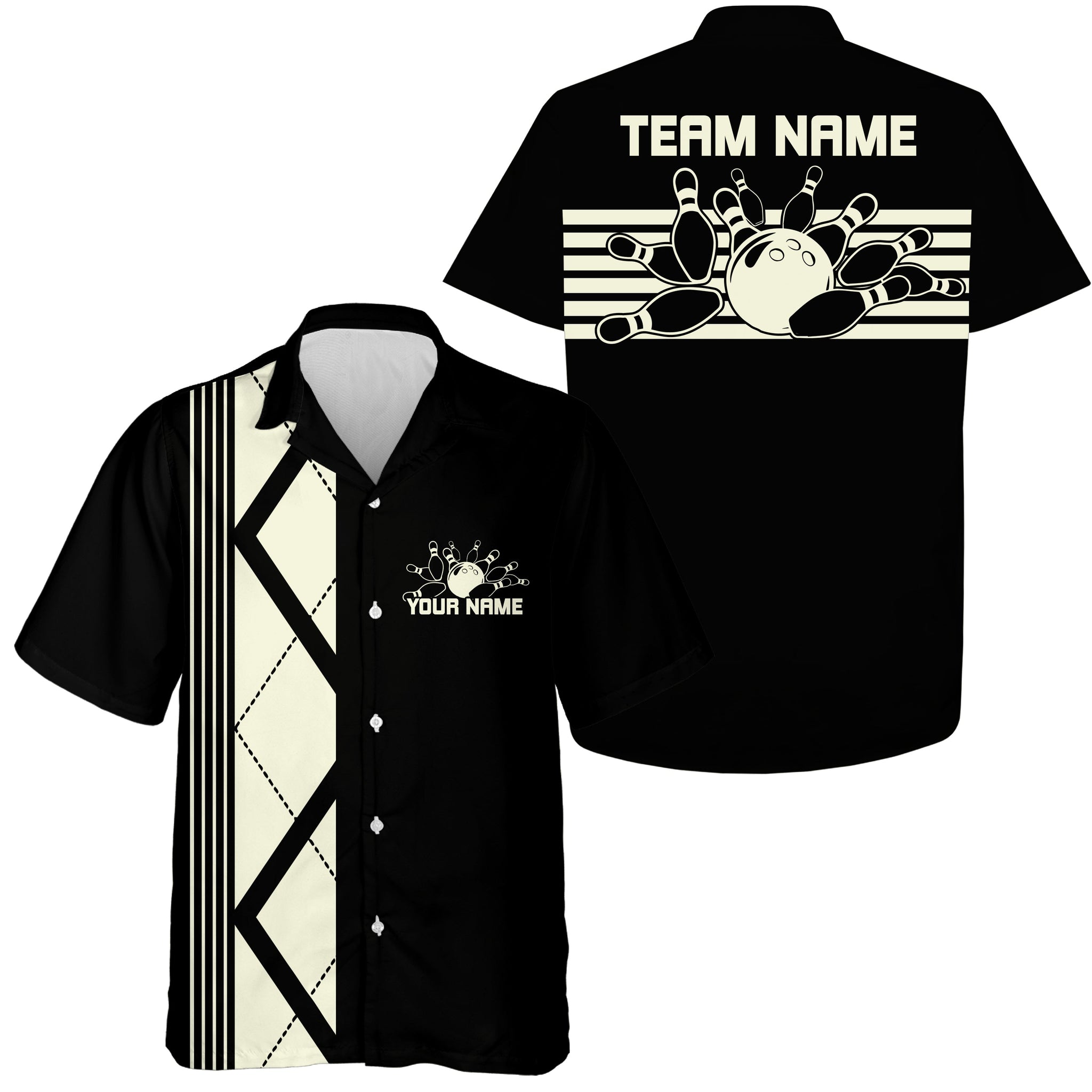 Custom Retro Bowling Button Up Shirt , Vintage Striped Bowling Team Hawaiian Shirt IPHW10071