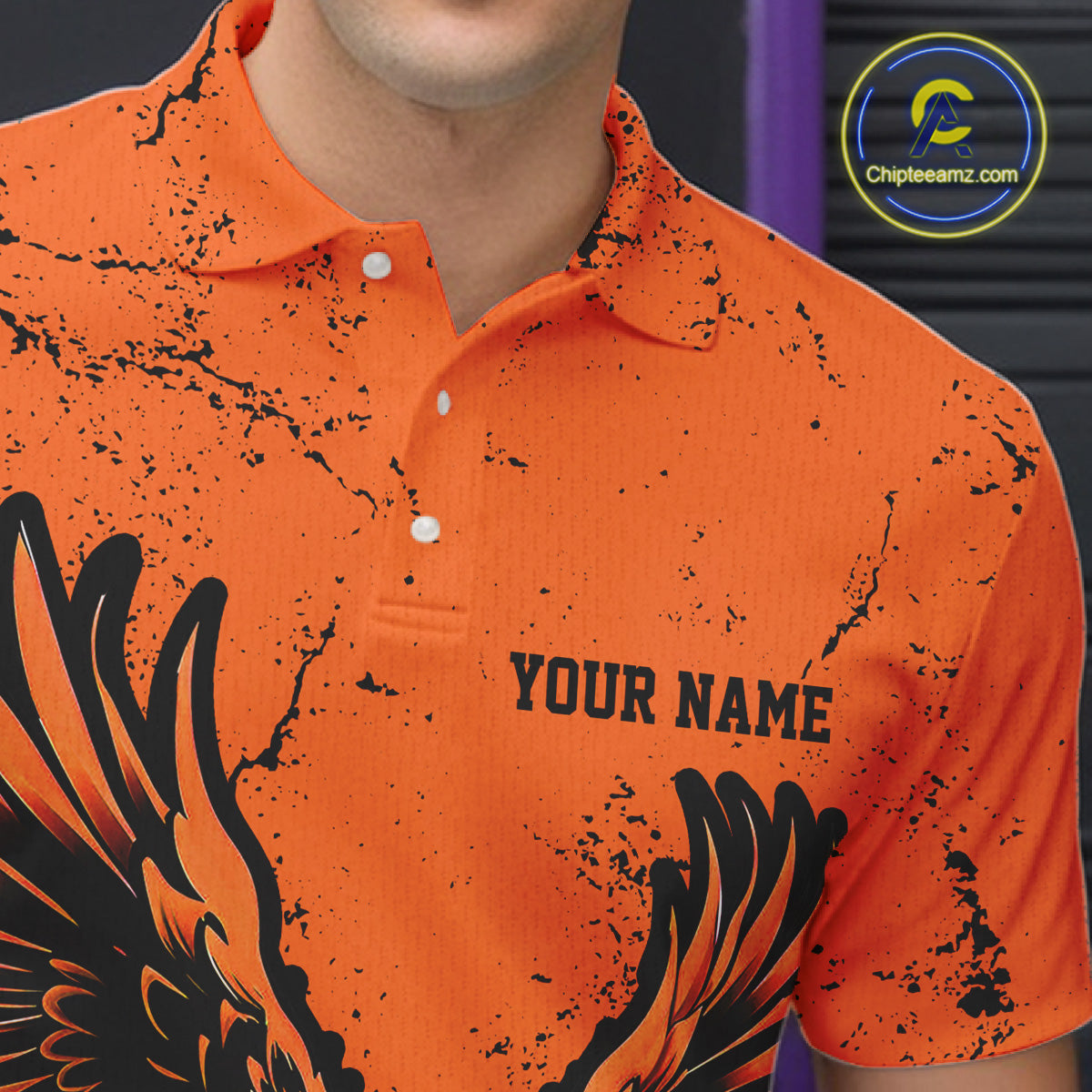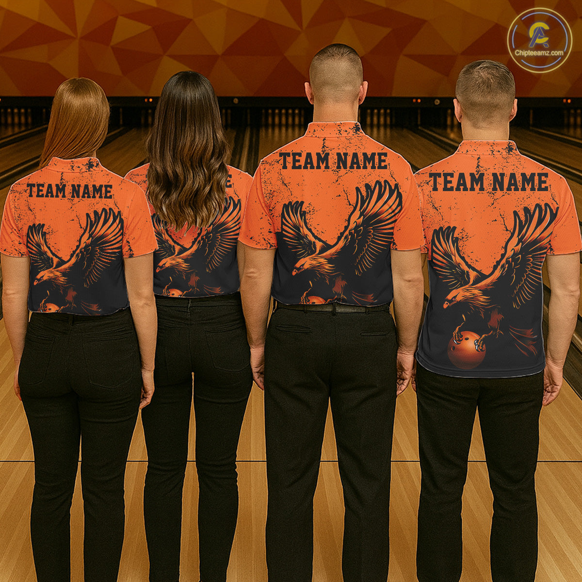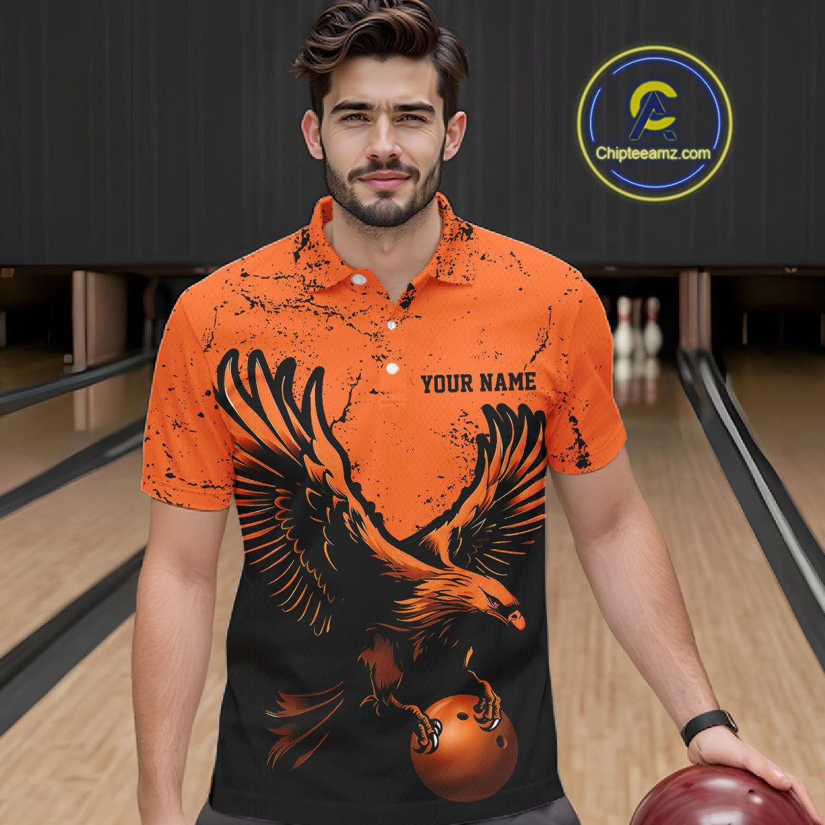 Custom Orange Eagle Men Bowling Polo Shirts Grunge Vintage Bowling Team Jerseys Bowlers Outfits IPHW5343