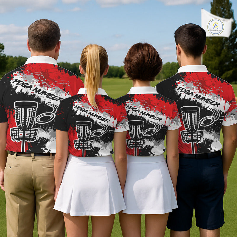 Black And Red Mens Golf Polo Shirt Custom Team Number Vintage Disc Golf Basket Mens Golf Wears NHN0028