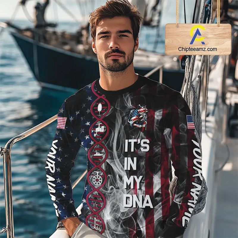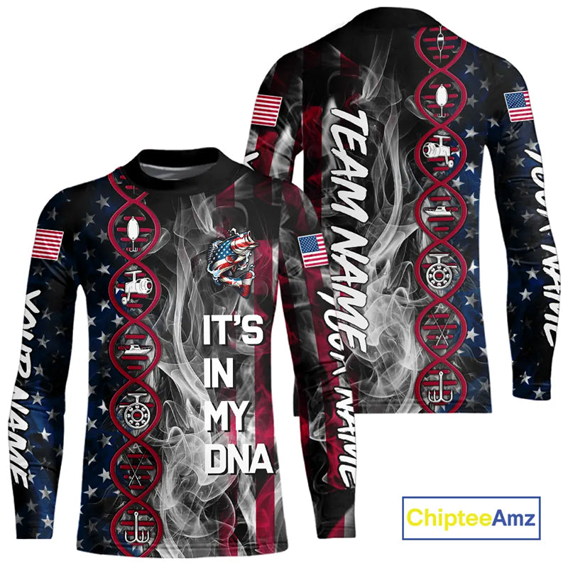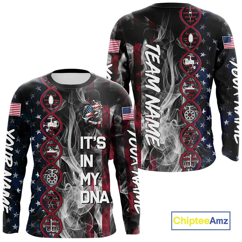 Personalized Red, White & Blue Smoke American Flag Patriotic Largemouth Bass Fishing shirts NQS11267