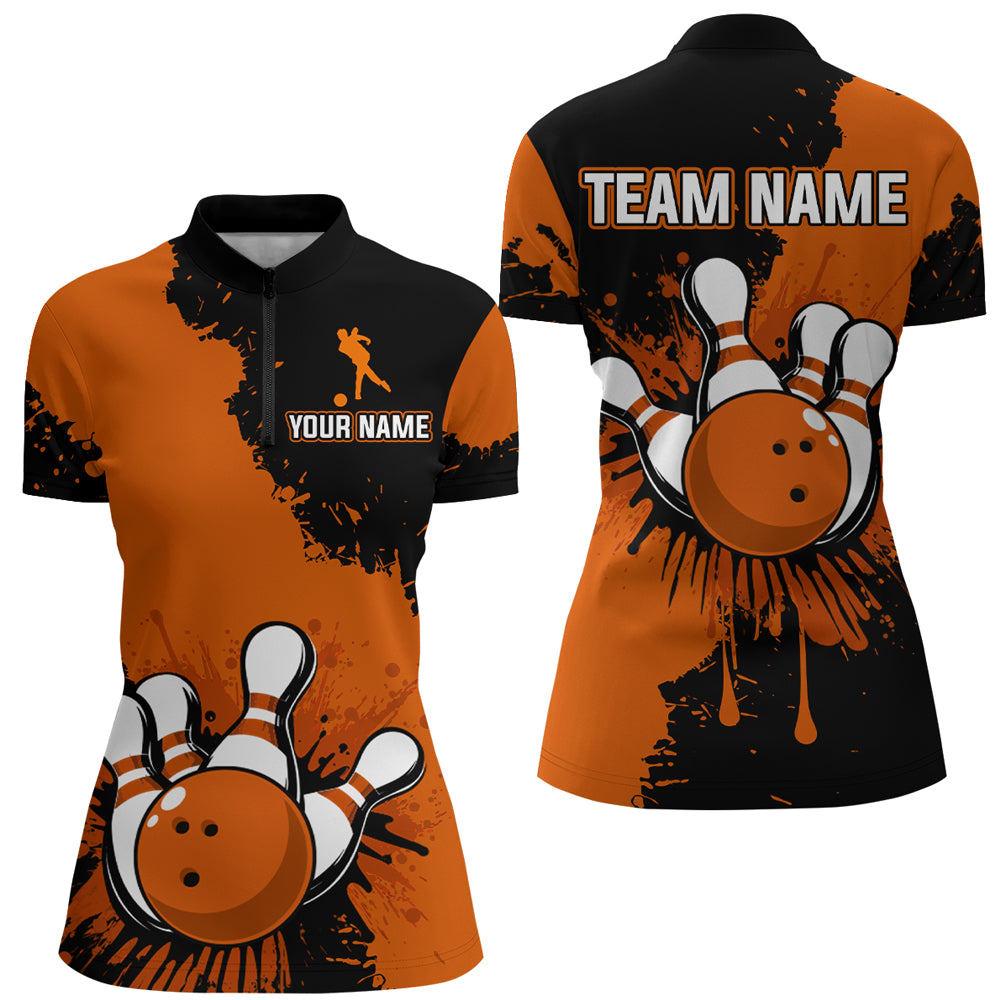 Custom Orange Bowling Jersey For Men Bowling Shirt Team Bowling Quarter-Zip Shirt CP05