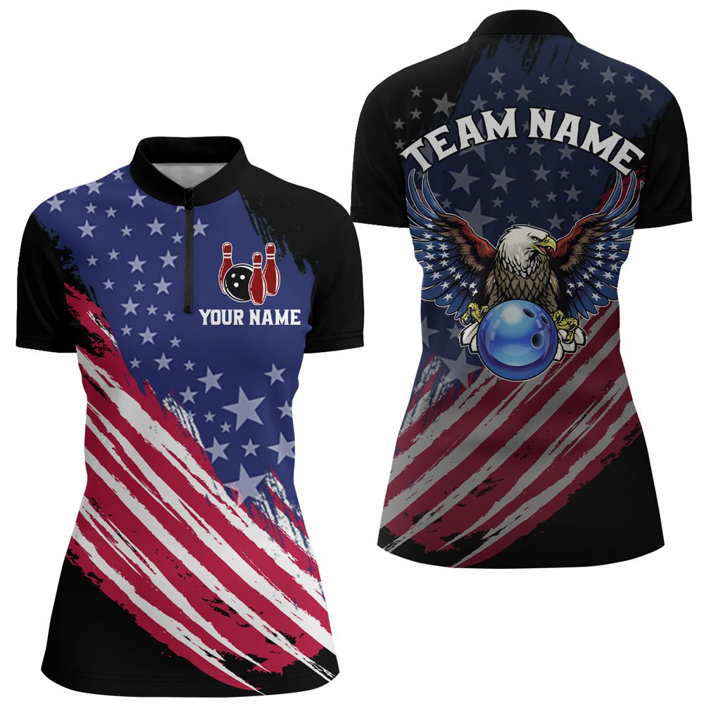 American Bowling Shirt Men & Women Eagle Bowling Jersey Custom Team Bowling Shirts 1/4 Zip BDT587