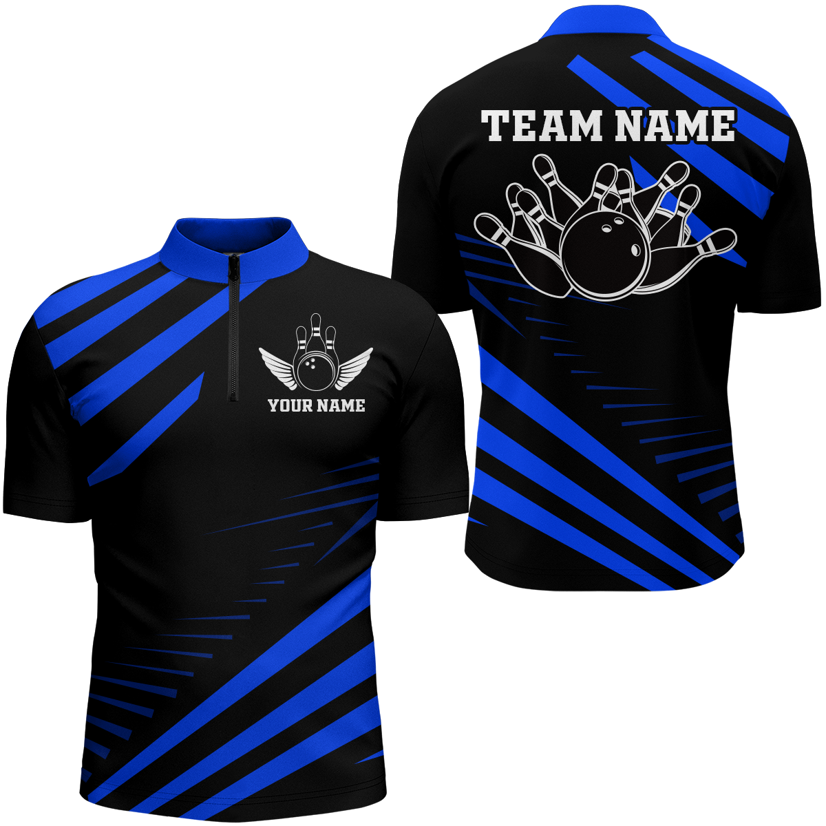 Blue Bowling Jersey Men And Women Custom Bowling Team Shirts Unisex Bowling Polo Quarter-zip CP26