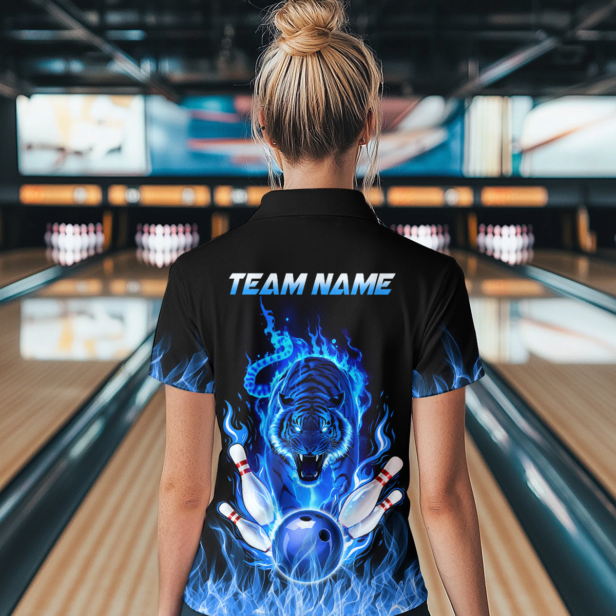 Blue Flaming Tiger Bowling Custom Women Bowling Polo & Quarter-Zip Bowling Team Jerseys HNT46